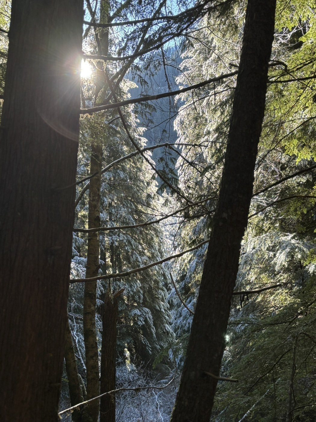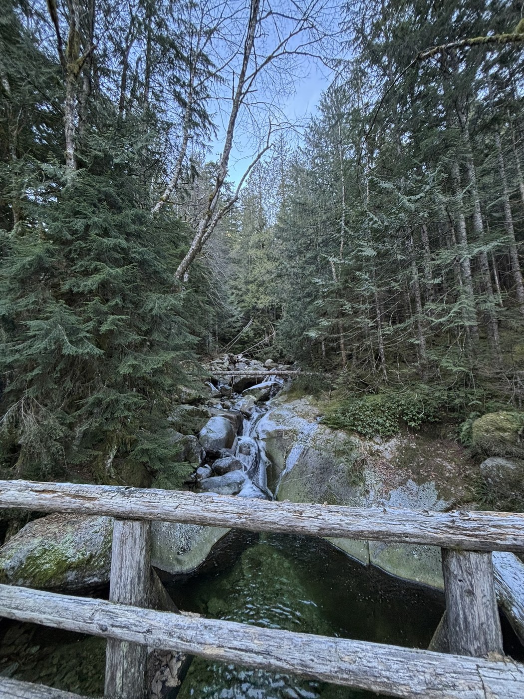 Today was a beautiful day in the forest. It was my first time on this trail and I loved it. I marked no snow because there was only a trace on the trail and the trees were a lovely sparkling white with frost and snow. The creek crossings were all low and easy to cross. No traction needed, I hike without trekking poles and had no issue. All of the waterfalls are beautiful with icy areas and fun icicles. The trail miles go so fast on this easy mostly flat trail. The road after the pavement has giant potholes but any car can make it. The pit toilet was open, clean, and full of TP.