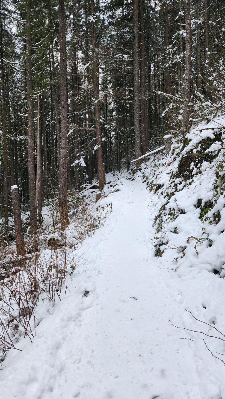 Early morning hike up to Rattlesnake Ledge. Creating this trip report to let everyone know that the trail is mostly packed snow with some ice by the second bridge. Can you make it up without traction--the answer is yes based on the pair of Converses I saw at the top; but your experience will be much smoother and safer if you have traction. I've included some pictures for reference.