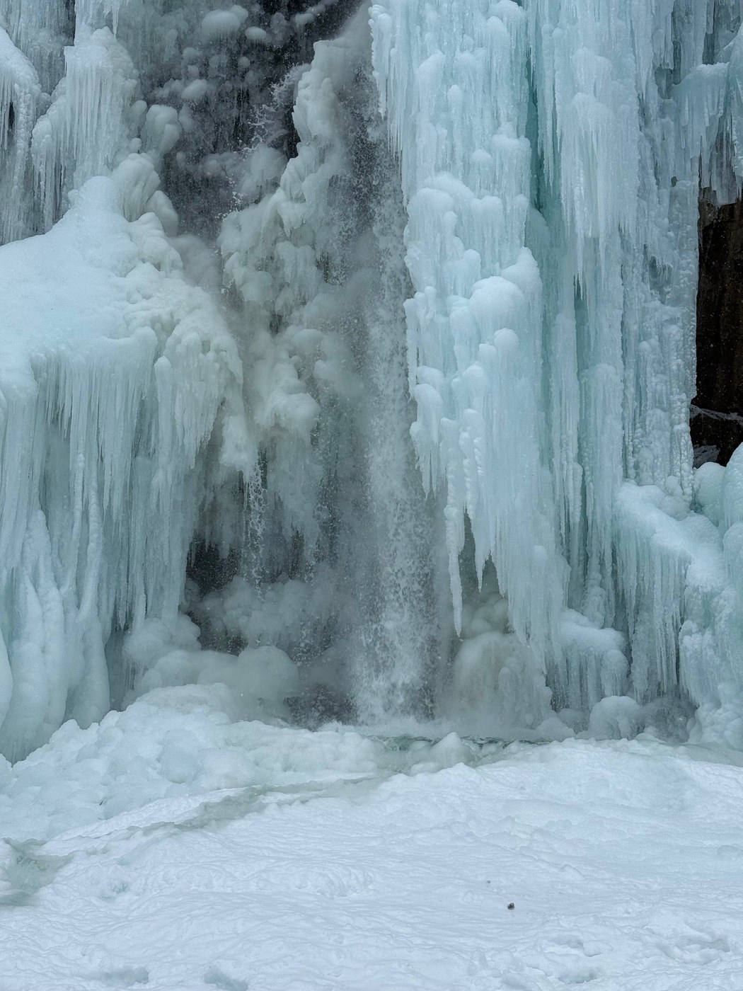 Spoke with the climbers in my photos and they said this was a rare opportunity to climb the middle section of the falls versus on the rock walls to the left or to the right, so now is probably the peak time to go see the falls frozen if you can. I was just going to do an update to my trip report from Feb 10 (yeah just three days ago, but so worth the drive out again). Today was overcast with light to moderate snowing. Blows my mind how single digit lows over the past few days has made the falls a curtain of ice from what I saw on Monday and the pool of water disappear overnight from what I saw in a Tuesday report. In fact, it was very mesmerizing watching water flow out from the impact hole, try to travel downstream over the ice and snow, and not get very far before freezing and then going a different direction. If you see those little streams, watch them, and you’ll see what I’m talking about. Enjoy and be safe! As I mentioned in my previous report, bring traction for your shoes and your vehicle. You’ll be happy you did so.