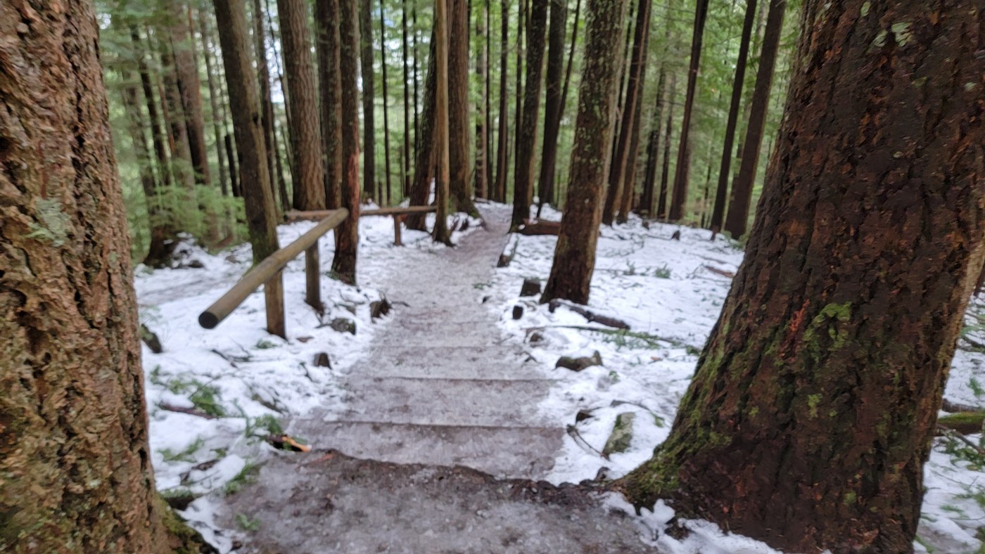 The trail is in pretty great condition otherwise. I'd definitely recommend carrying some sort of traction this time of year, but snowshoes are probably overkill.