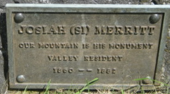 Mount Si is named after Josiah Merrit, a New Jersey native, who built a cabin at the base of the mountain in 1860. The locals called him Uncle Si. He raised hogs and sold bacon. In February 1882 he died and was buried in the Fall City cemetery.