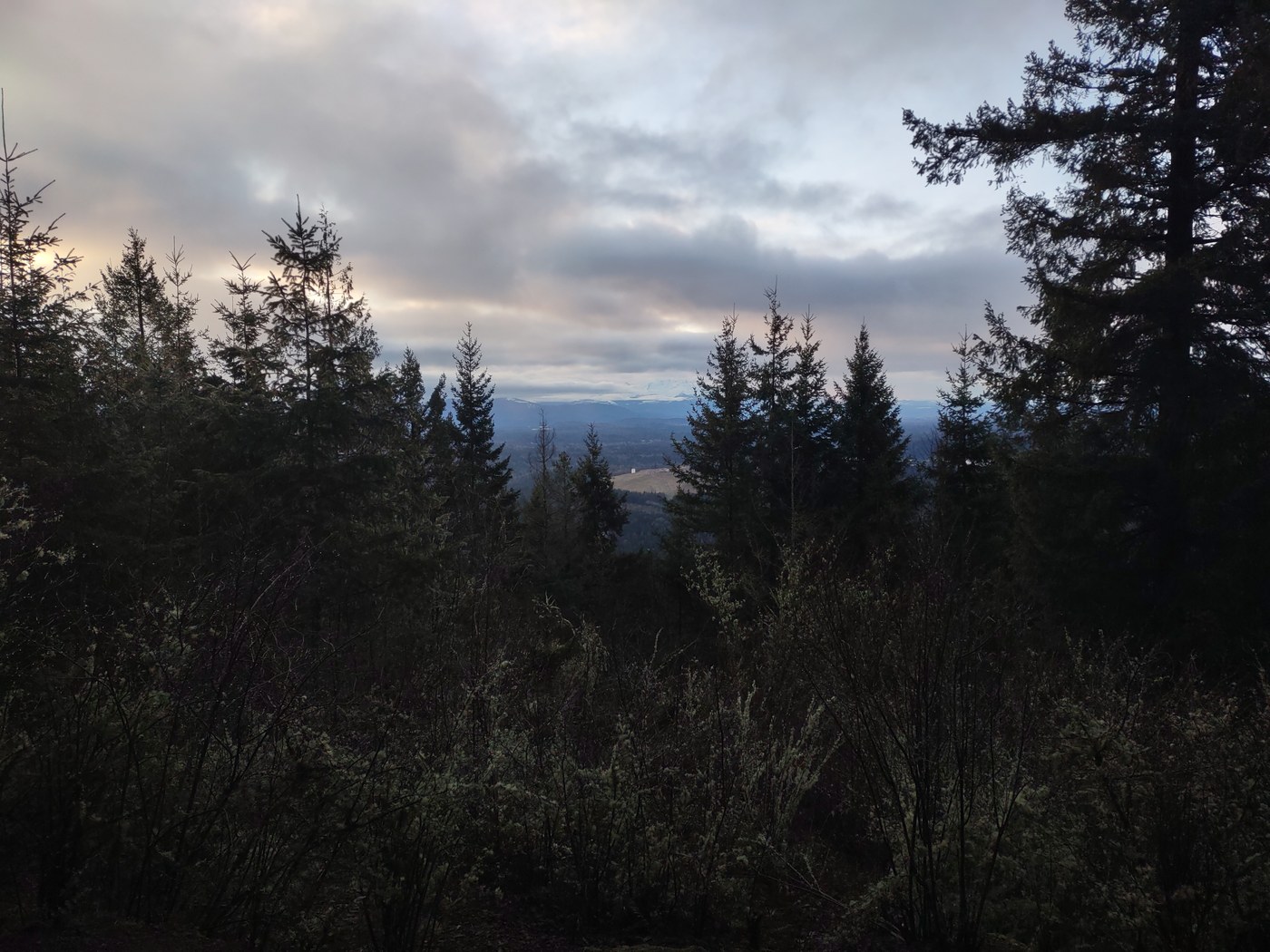 I met my buddy Jeno at 6:00 AM at the May Valley trailhead this morning. We were the first two cars in the parking lot with a light mist falling. One of the two bathrooms is open (the other one has been closed for over a year) and had TP but was very dirty and had graffiti all over the inside (SMH). Jeno opted for raingear as we headed out but I didn't think I'd need it and went without it but the mist was so soaking I changed into mine about 5 minutes up the trail.