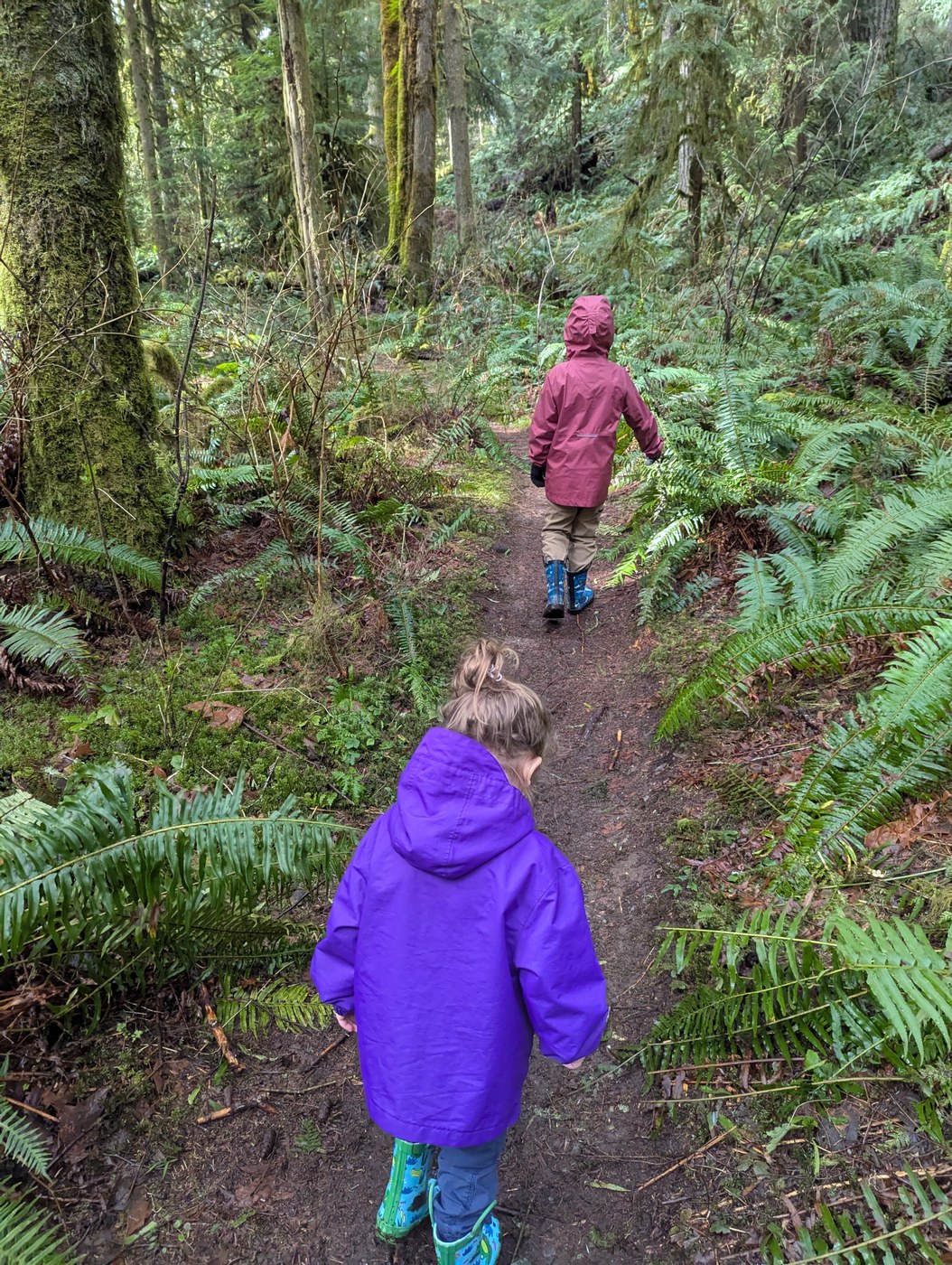 My 5 year old is the little botanist and pointed out LOTS of Huckleberry bushes, Oregon Grape, Salal, and of course Sword Ferns. He also saw a Rhododendron.
