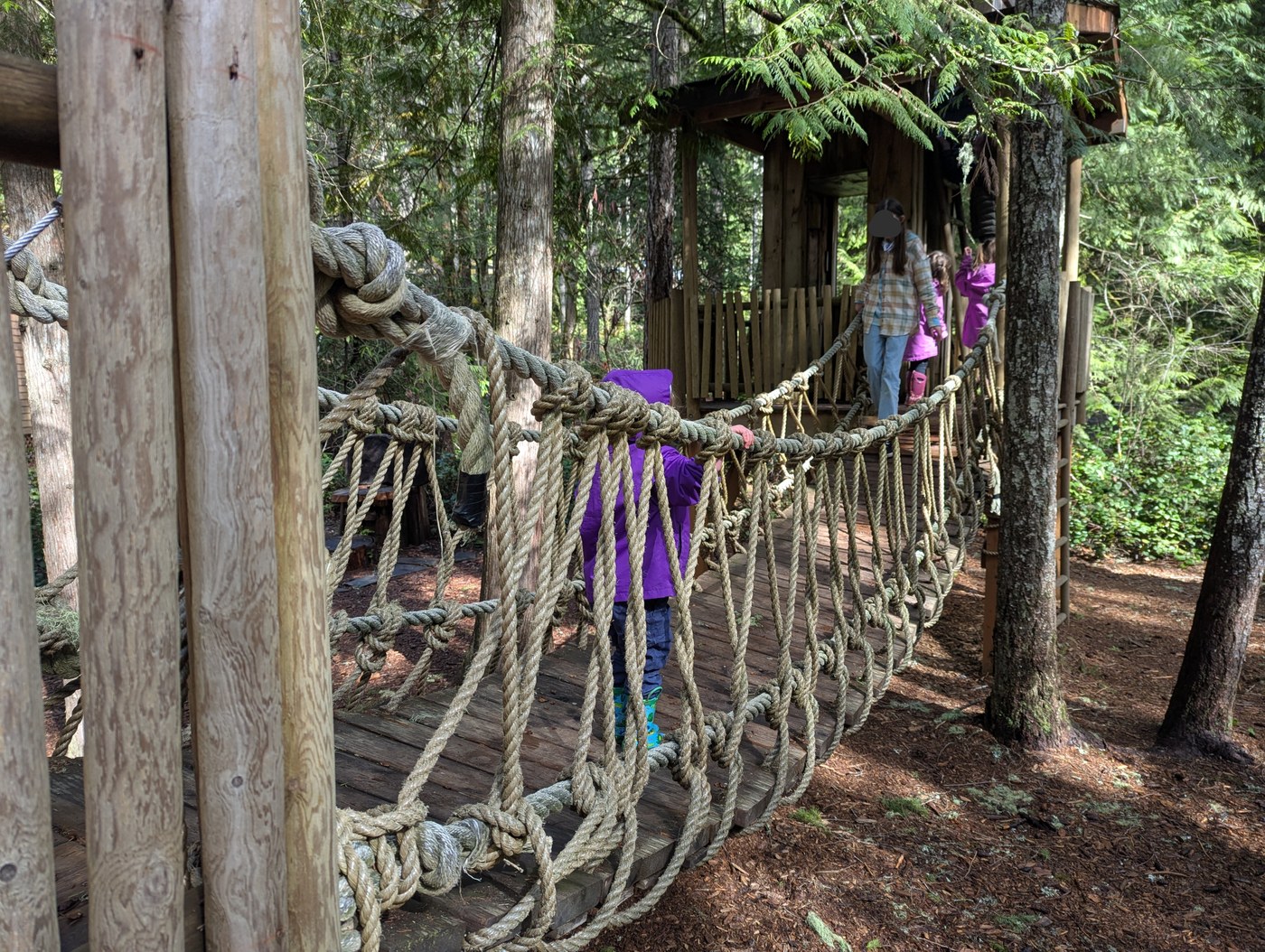We also made a stop at the end of the trail at the wooden playground. It was a little "old" for my 2-year old since the ladders were a little tough for her but she did enjoy the big-kid swings.