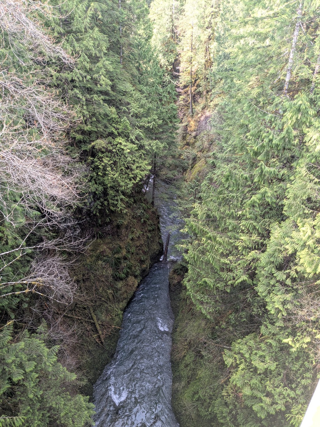 There's a nice view into the West Satsop River gorge from the bridge right before the trailhead, and there's a nice campsite just past it with some views of Spoon Creek above the falls.