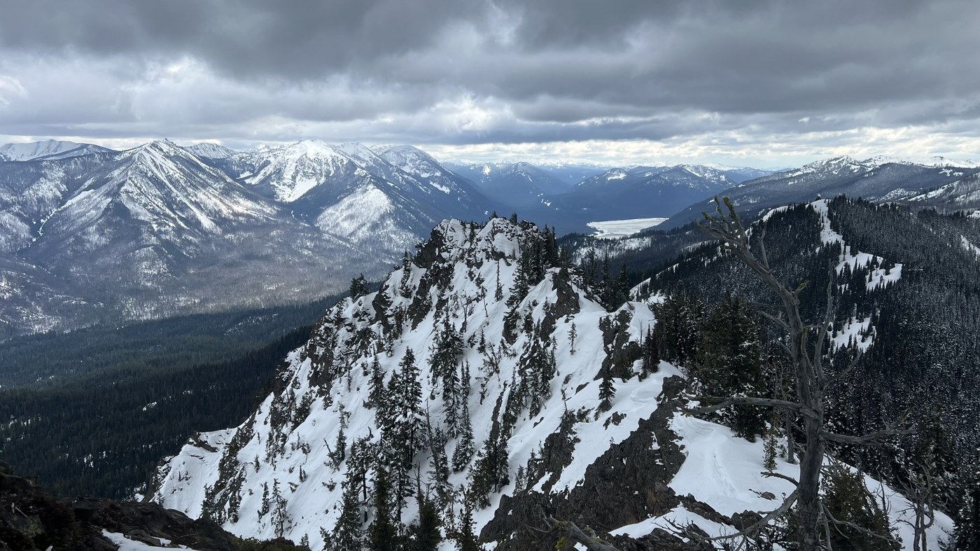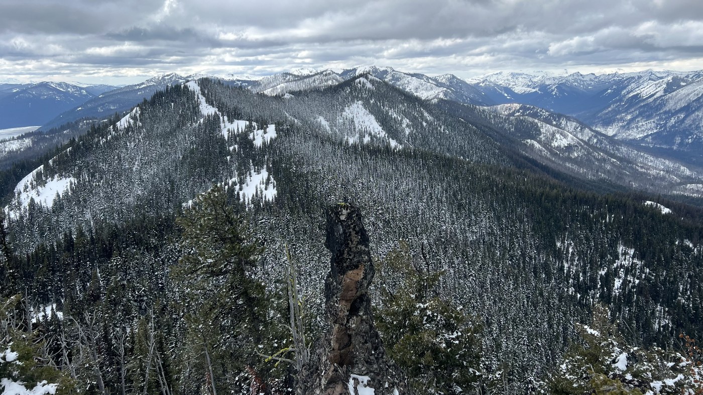Coming down the super steep slope was a bit tricky with snowshoes, but we made it down without slipping. We pretty much took our same route down, finishing at 6:10pm. Excellent trip!! 8.9 miles with 3707 ft elevation gain
