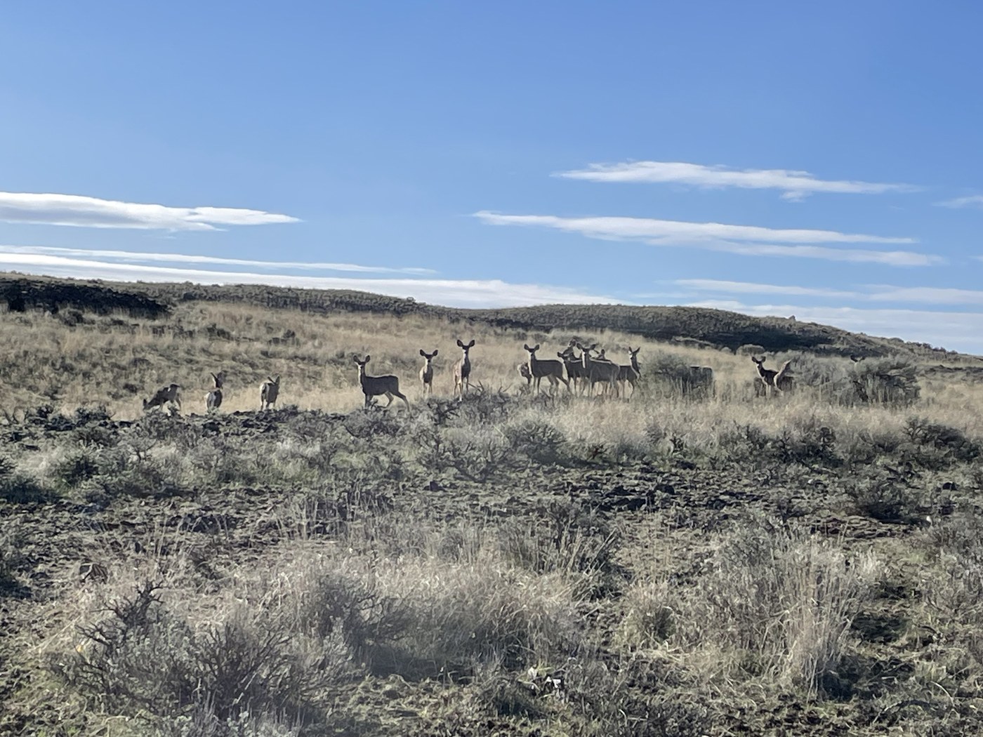 Left the trailhead at 7:10 . Took a right at the junction arriving at the top at 8:00 . Was not expecting the scramble going up but that’s ok . Once at the top it is relatively flat .Walked the outside rim counter clockwise enjoying every step . Lots of great views. Ran into a couple herds of deer. The first I counted 20. We were all heading in the same direction up there so I ended up pushing them around the north west corner. They were curious and not to shy . I was wearing a big hood so they weren’t to sure about me.Not much pressure up there , they have there own little oasis. Ran into the other group of about 10 on the west side in the middle. These were more shy like normal. Glad I went counter clockwise and covered the bigger side first. There is a deep saddle that separates the north from the south. The North is much bigger and the saddle is ware you decide witch way to go when your on your way up . All in all it was epic ! I ended up doing a figure 8 and covered both sides getting back to the truck about noon.No regrets, a must do if you go to Banks Lake . Wind started picking up as I started heading down . Great way to spend a morning .
