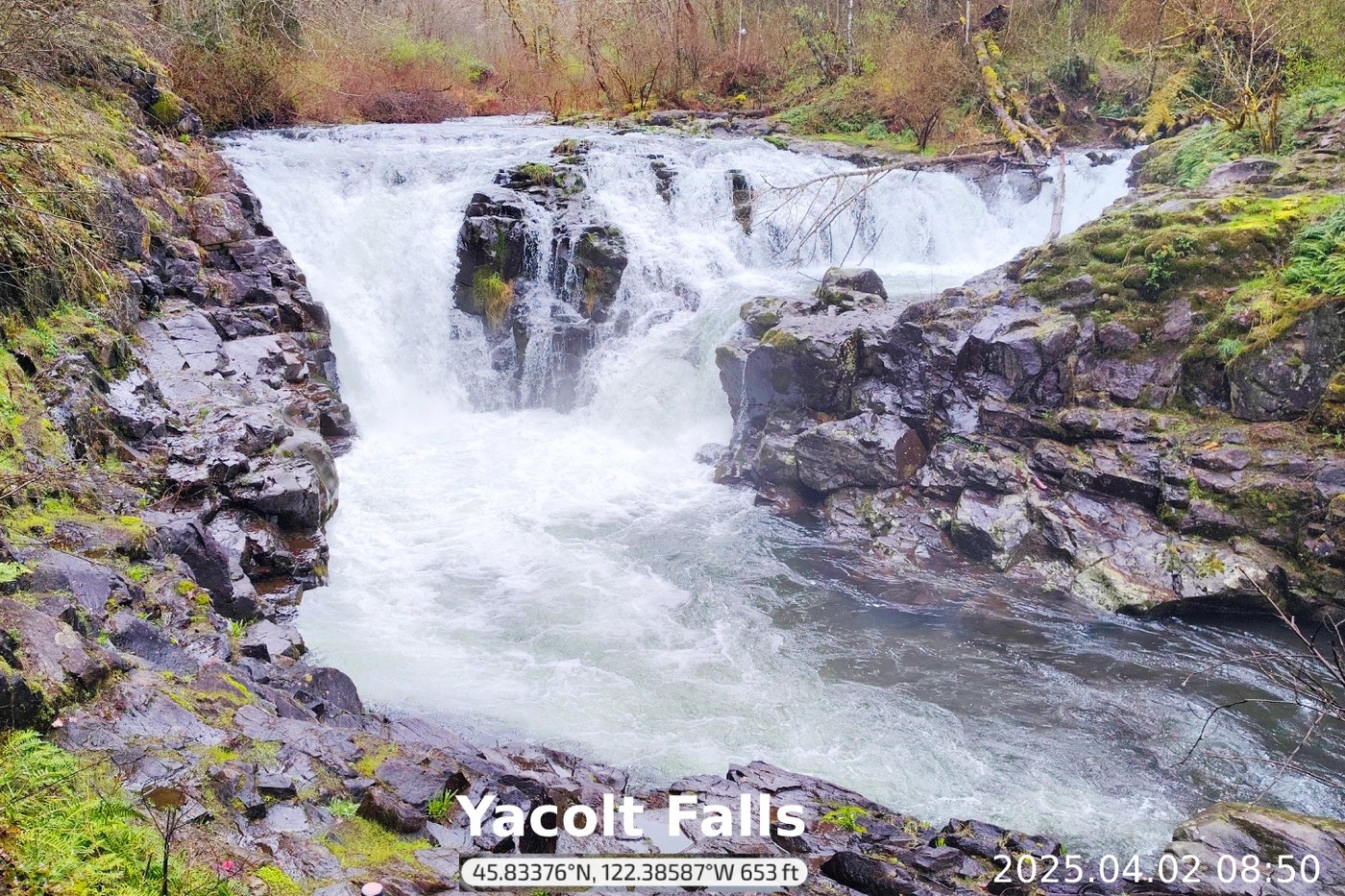 When i was at Yacolt Falls (~08:45) enjoying its views, i noticed the Swing Bridge crossing Big Tree Creek was "opened" (i.e. dis-allowing foot-traffic). And i noticed a man slowly and carefully, wading along the West bank of BIg Tree Creek.
