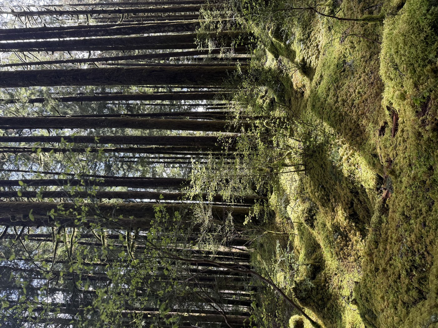 The moss covered trees, trillium, yellow skunk cabbage and stream crossing were beautiful. Thankful for the sunny day!