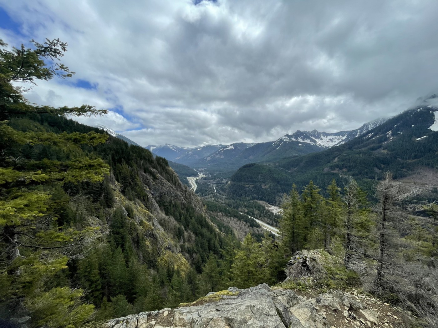 Trail is well marked and easy to follow. I was at the balcony junction in an hour and continued up. A little stream to hop over but nothing serious. Snow started at 4000’ (so about final 600’). Everything was compact or even a little icy that microspikes make getting up a breeze. Forecast called for fog and got hit with some wet snow a little past the balcony. Most of summit was socked in with fog but managed to get a little view of Mailbox peak? and the corridor. Not the most spectacular views ever but the trail itself was very enjoyable.