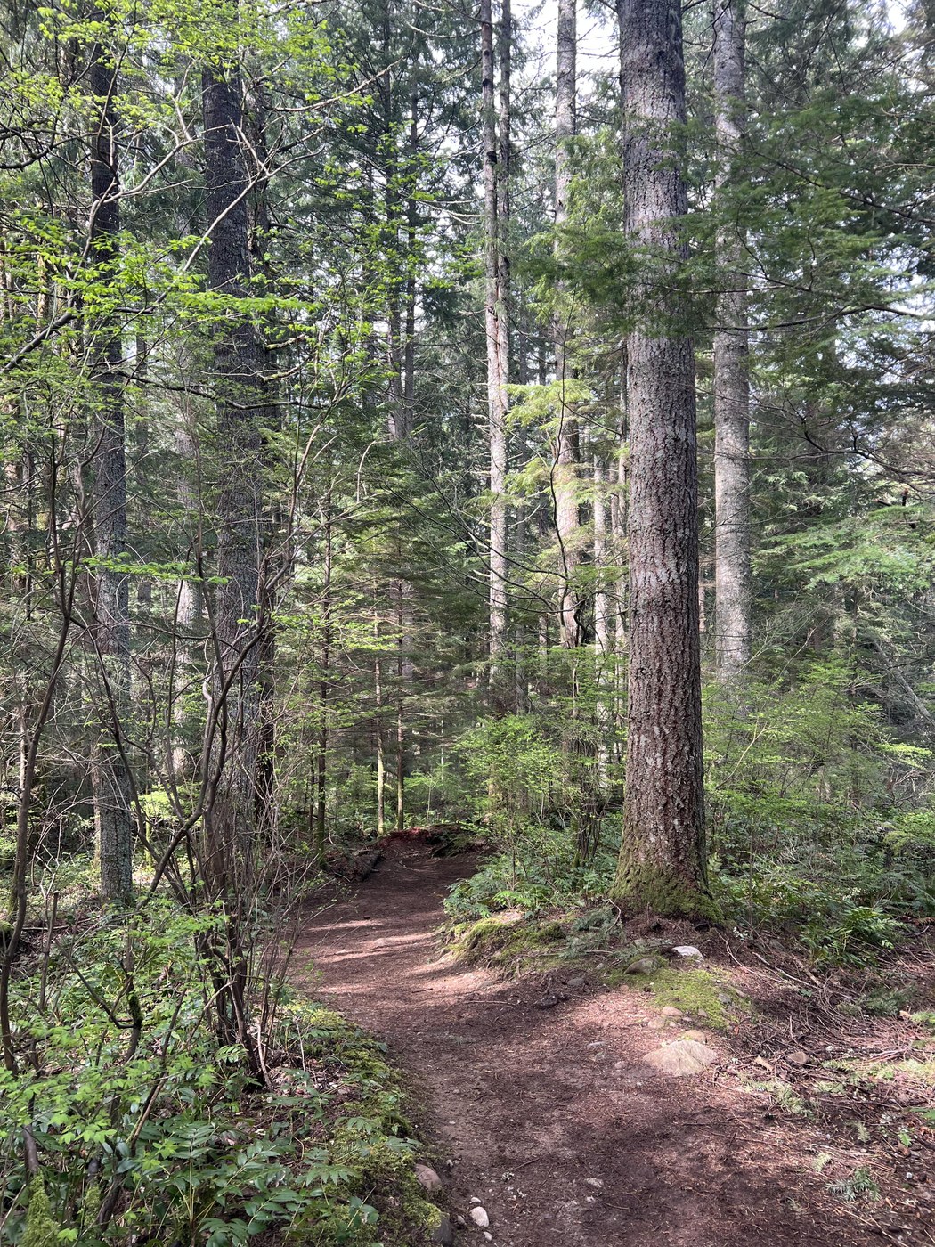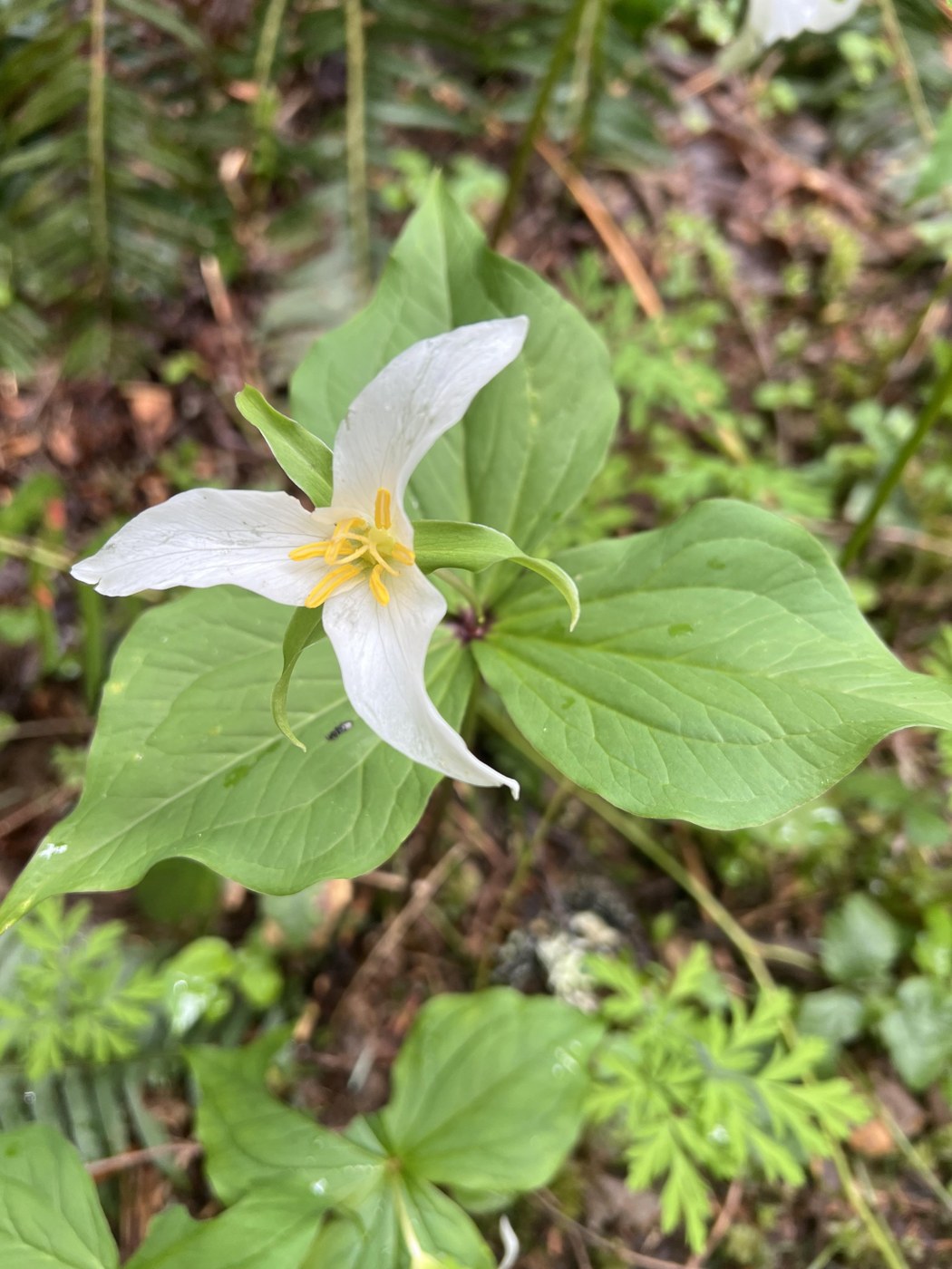 Trees are starting to leaf out and I spotted some trillium along the trail. The salmon berry shrubs are also starting to bloom. The whole hike is very peaceful, especially the sounds of the creek when you're near it. There are a couple spots where the trail is muddy, but all easy to navigate.