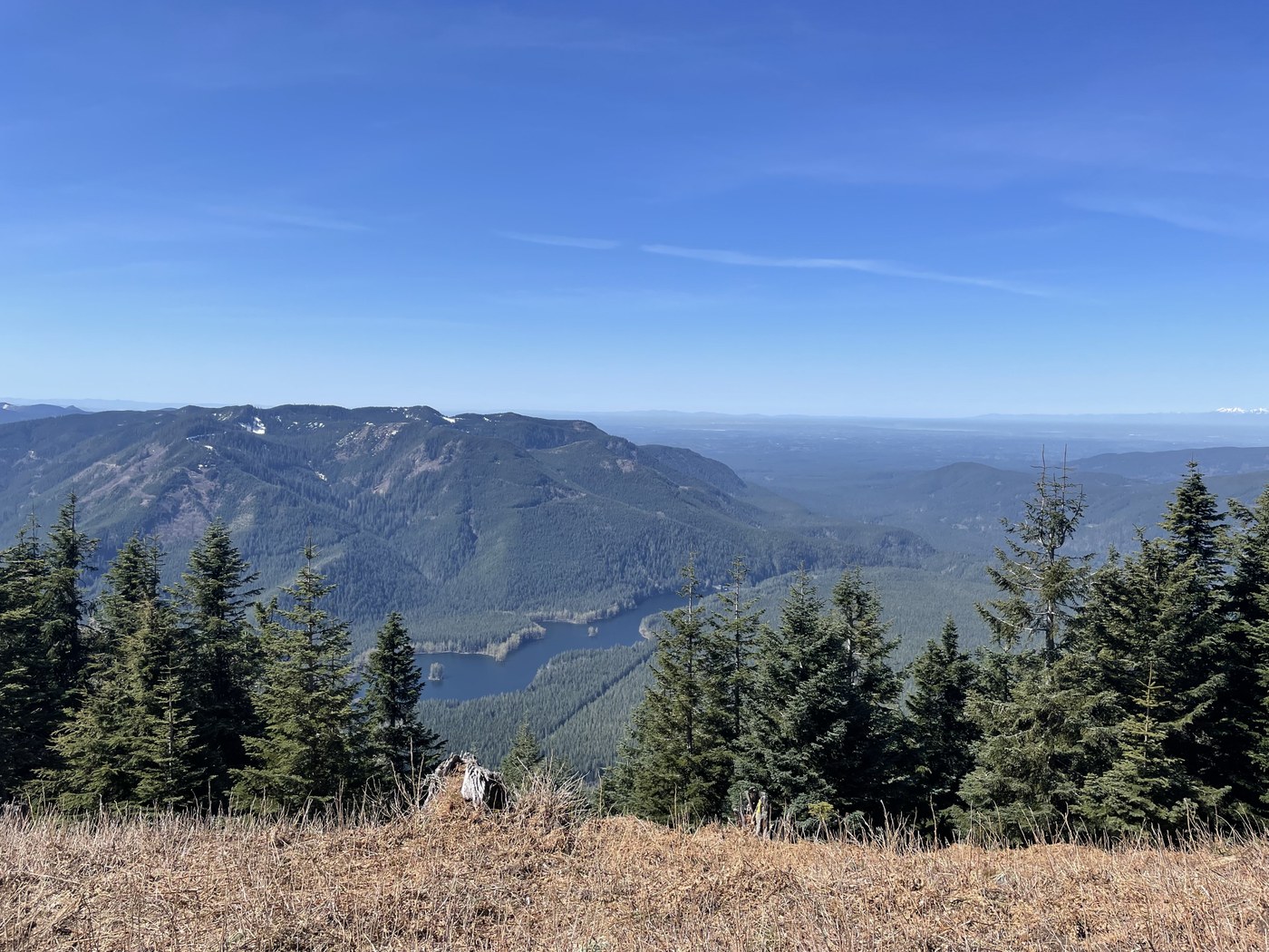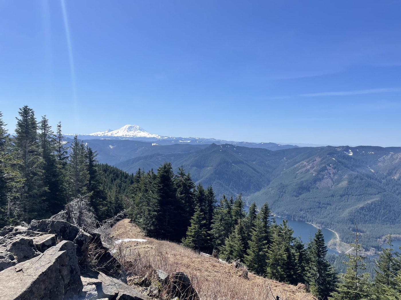 A very lovely I-90 corridor hike! Great forest walk with good variation and a solid view of the lakes and Mt. Rainier at the top. And on the other side, peeks of Baker, Glacier and such. Only patchy snow near the top, used a pole and managed just fine without micro spikes. This one is definitely steeper than some of the other North Bend usual's, but very much worth it. Once your about half way in the I-90 noise fades out, so I pulled out the headphones to enjoy the wilderness, and plus you never know if you’re going to make a new friend! In all, ran into maybe less than a dozen people total on the trail.