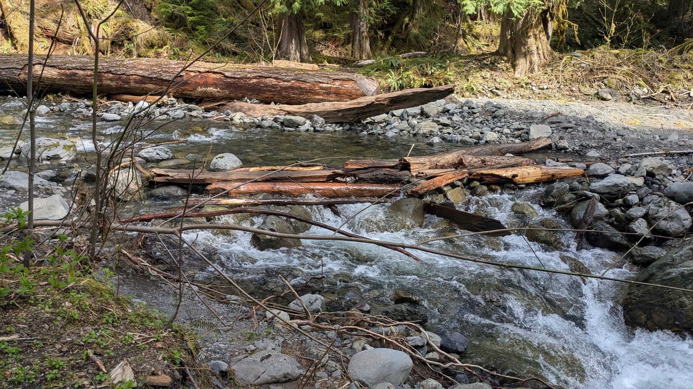 I almost fell in when trying to cross the log bridge since it was not stable in my opinion coming back from flapjacks I think it would be safer to cross to the north fork trail trail at the 1 mile rapids bridge