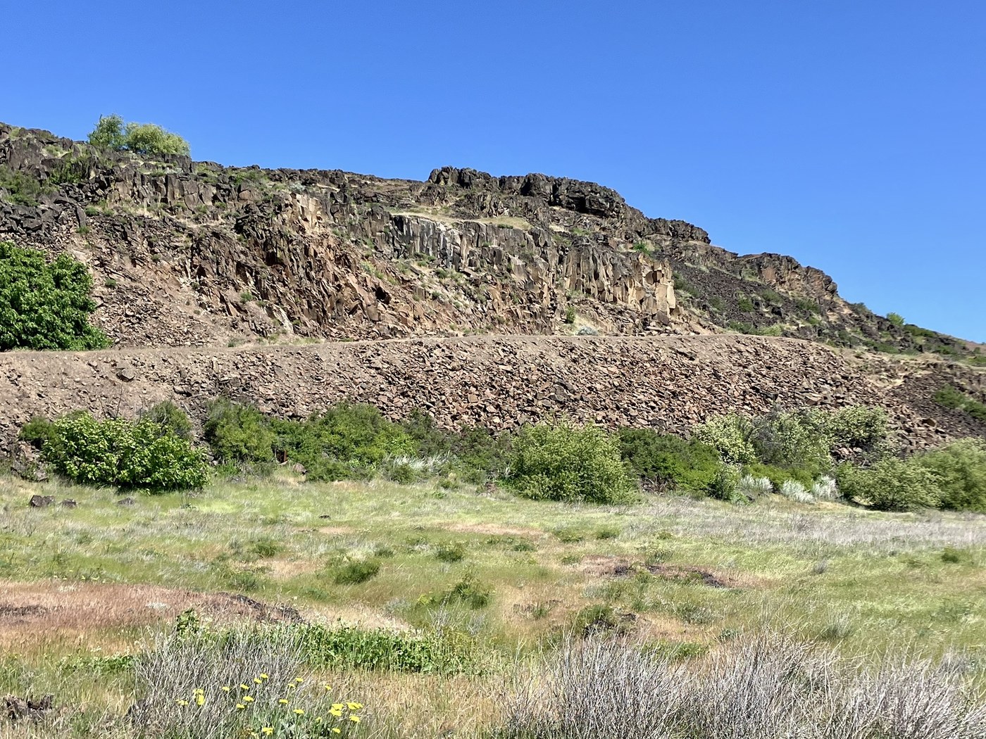 Lovely but windy day on trail. My app said gusts up to 35 mph I was definitely pushed around a little. I arrived about 11:30 to snag the last parking spot. Balsam Root is past prime but still lovely. Lupin and other blooms are out too as cheerful company. Note, I passed a rattlesnake on the access trail so keep an eye on pups and kiddos.