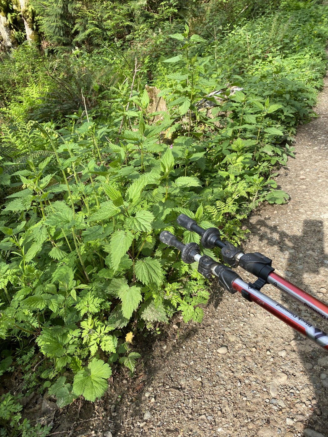 Beware the stinging nettles along the first half mile of trail. At the top are huge devil's club but those are obviously no-touch.
