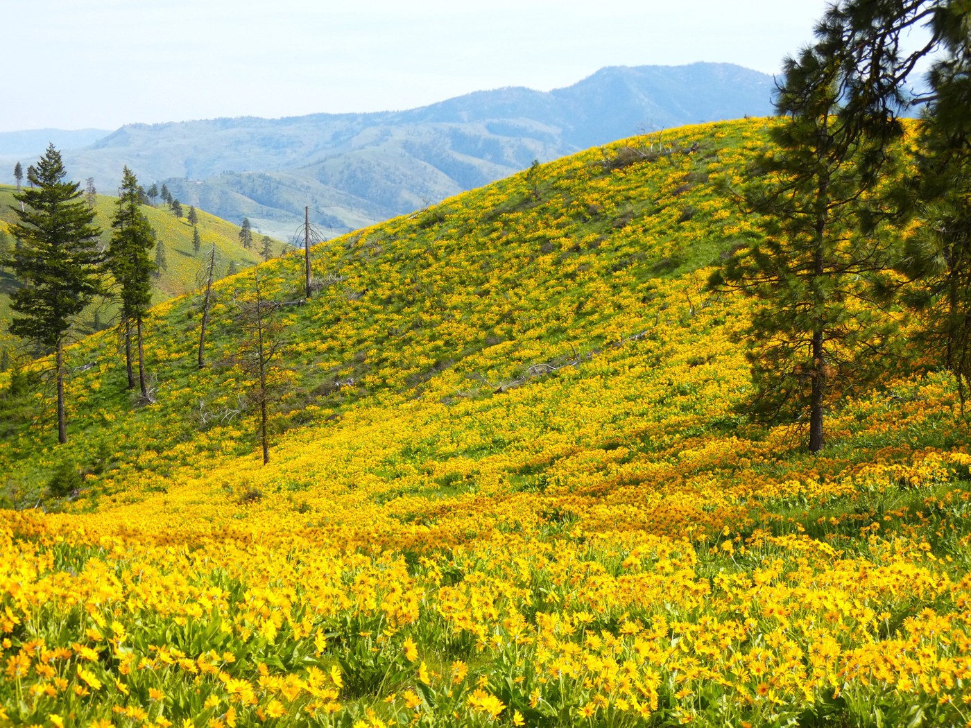 It is less than a mile with only 400 feet of gain to get to the ridge, then you can stroll as far as you want south, so this is perhaps the best wildflower hike there is (outside of MRNP) for families and beginners. The ridge had one of the very best flower displays I have ever seen, with the hills painted in yellow and purple.