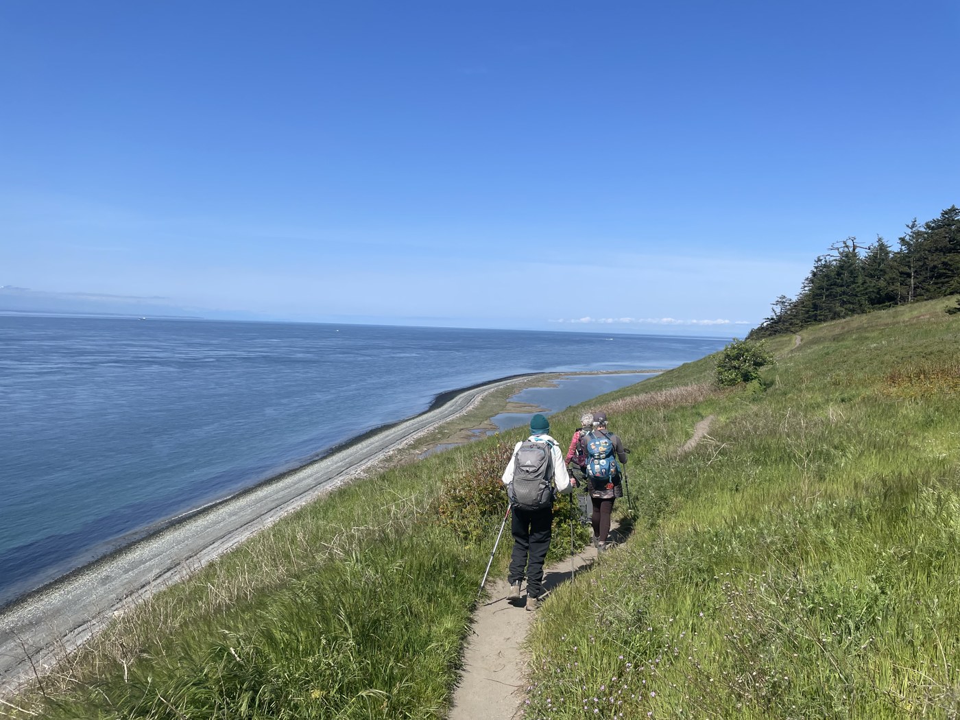 I hiked with Outside Nancy so I will not repeat the details in her excellent report. The trail we followed is dirt or sand, mostly a gentle slope through grass and wildflowers on the bluff. There are steps or switchbacks to transition from the bluff to the shore. An enjoyable loop route can be done in either direction, or you can remain on one level and retrace your steps. This option makes this trail good for all ability hikers. You will enjoy expansive views in every direction, and no traffic noise!