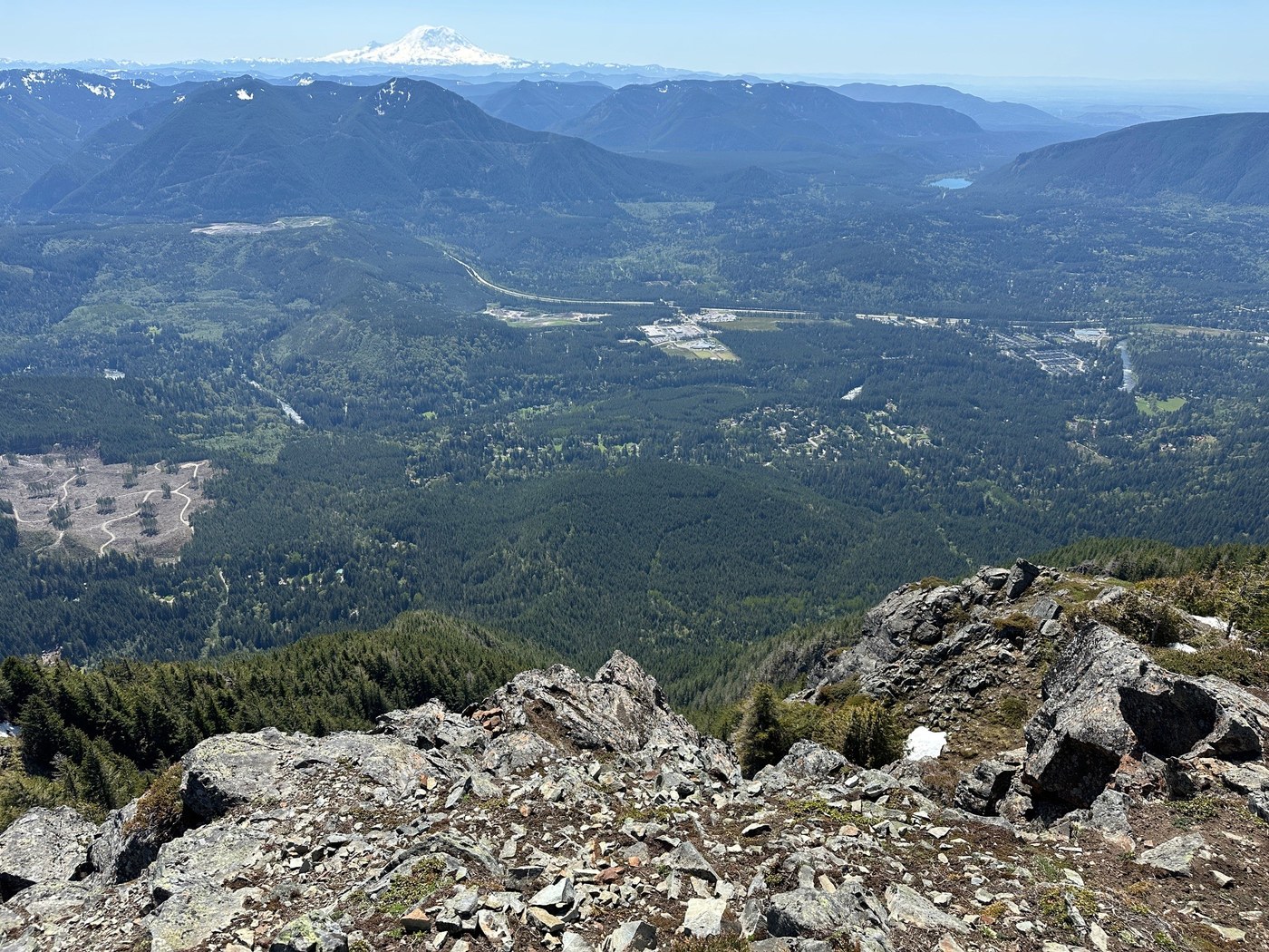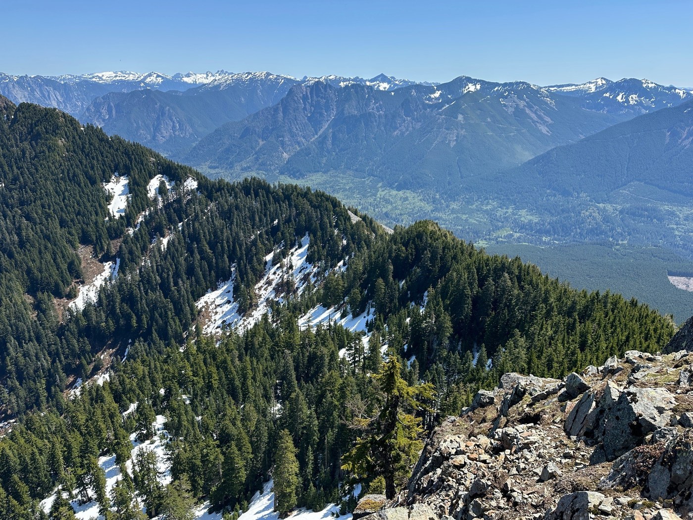 Parked at Mount Si Trail head & took Roaring Creek trail over to Teneriffe Connector then up to Teneriffe summit. Began running into snow a little way past the juncture for Mount Si Haystack, the snow gradually increased till in places probably got to be 2-3' but was quite condensed along with some boot path so just having poles was sufficient did not put on traction devices. Trail is quite clearly marked most of the way except maybe the last mile or so prior to the summit it was nice to have it shown on our electronic devices. Summit was stunning, being our first time there. The few people we met on the way to or on the summit preferred coming up the Kamikaze trail & going back on the Teneriffe Trail & we did see a number coming up as we headed down. The Kamikaze trail down wasn't as bad as the name sounds but was glad to have it shown electronically on our devices particularly till, we got below snow line but then was pretty clear except for in a few spots. Taking in Teneriffe Falls on the way down made it all an especially enjoyable & worthwhile hike.