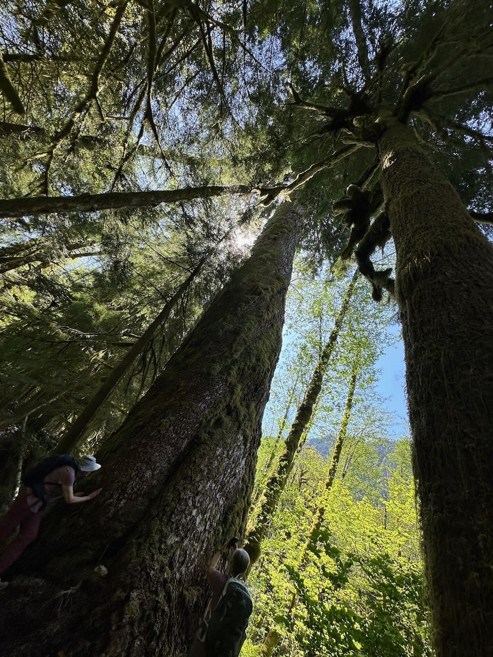 Hiked up to the Big Tree on Friday, 5/1. The trail was in great shape most of the way. It was muddy in a few spots, the salmonberry was starting to encroach on the trail past the campsite, and we encountered a few trees across the trail, but it's still easily passable. We missed one turn on the way back since the trail becomes a little harder to follow past the camp, but we didn't have to backtrack far. We heard what sounded like an owl pretty close by; also spotted what looked like a big cat print on the path in the mud. Hiked about 9.42 miles with 1144' elevation gain.