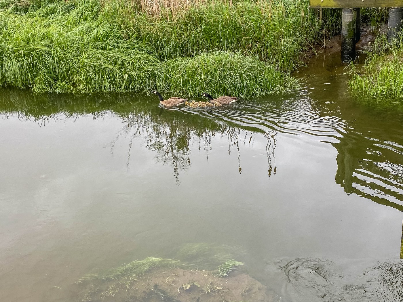 Highlights included a single blue-winged teal, a pair of cinnamon teal (between the two STP containers) with young, Canada geese with 7 goslings, mallards and gadwall with ducklings, over a dozen eagles and herons, good looks at common yellowthroats, golden-crowned sparrow on the trail, yellow warblers, marsh wren nests (at least 5), and several killdeer close to the path as the tide went out. We also saw one lone coot escape predation from a bald eagle, and we heard a hairy and a downy woodpecker. Merlin picked up a Nashville warbler and a few other birds in our vicinity that we looked for but were not able to get eyes on.