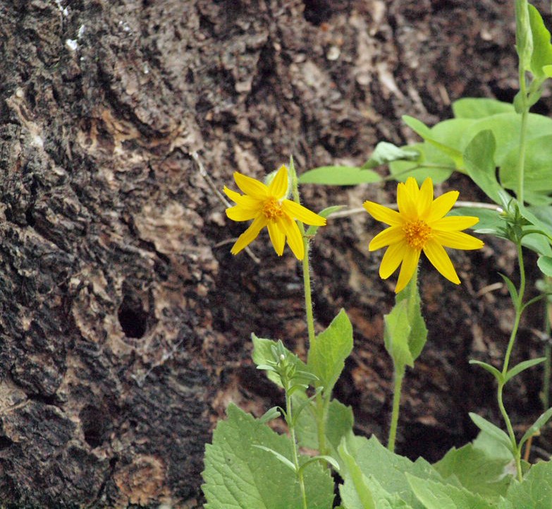 Hundreds of Chocolate Lilies! Maybe a thousand. Unbelievable. We usually only see a couple or three of them early in the Spring. The lily show went on and on in the middle section of our trail. And we had solitude, all alone all day in this floriferous forest. The forest here is open and airy with almost no brushy undergrowth, just grass, flowers, ferns and small shrubs. Big ponderosa pine are the main tree species. We. counted 22 flower species in bloom. Most common were clumps of yellow Arnica. There were no trail obstacles on our route and no streams to cross.