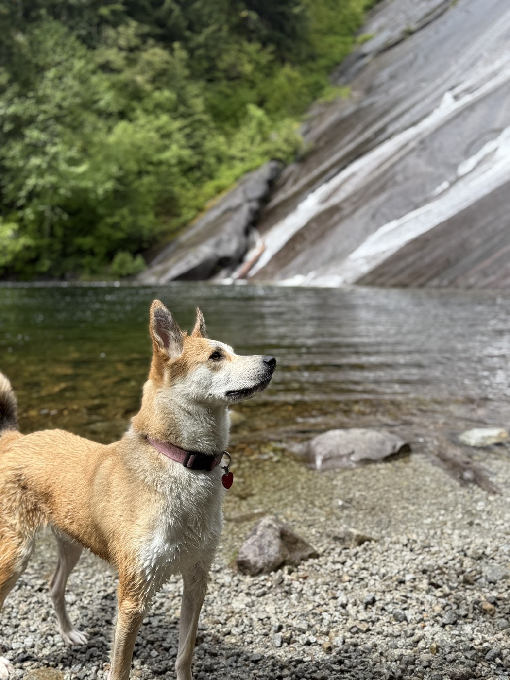 The trail is in great shape. You might have to cross a few creeks and was able to do it keeping my socks dry. Reached the falls around 1pm and had it to me and my pup alone. My pup enjoyed the falls and took a dip in the catchment area.