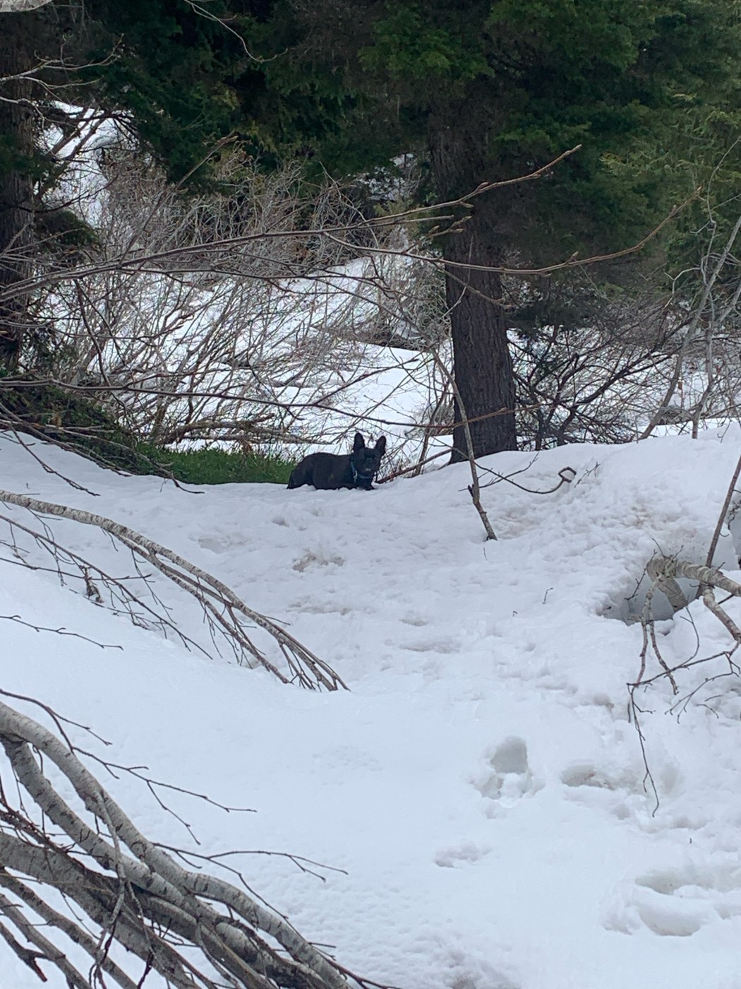 The trail was snow free and clear for about 2.75 miles (about 4400'). There are 6 small (about 6" diameter) poles across the trail before the Wilderness boundary. All are very easy for a hiker to get over or around.