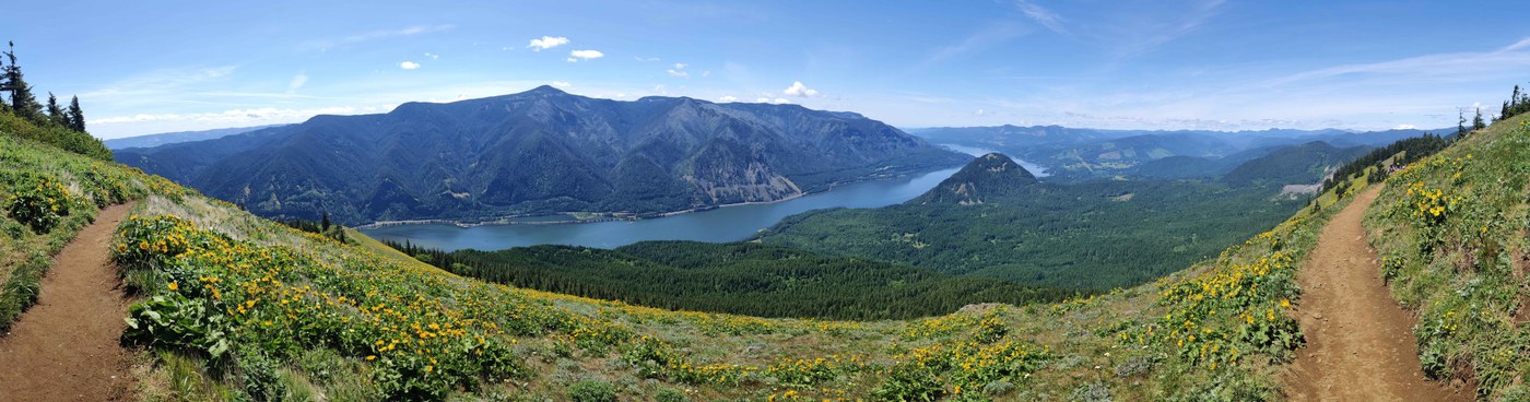 Dog Mountain Summit: Very straightforward. I did the loop in reverse (Augspruger to Dog Mountain route), but I might recommend doing it the other way (if Dog Mountain is the only destination). The incline is more significant on the Dog Mountain trail, which makes the decline less severe if you use the Augspruger trail on the way back down. The Dog Mountain Trail is very well marked, has minimal obstacles, and is generally very easy to follow. The elevation gain is pretty significant, particularly considering the distance. There are actually two Dog Mountain Trails - the old and the new trail. Both are very well defined and end up in the same location. The Old trail is about a ⅓ to ½ of a mile shorter than the new trail - as such, the incline is more severe. So choose your own adventure on that. The views are best just below the summit. The actual summit is treed and offers no real views - but is only a minute or two past the the best viewpoint.