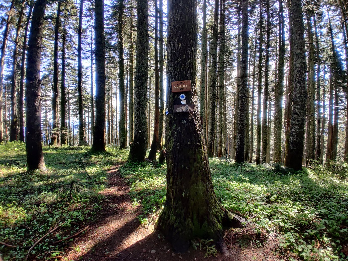 Augspurger Mountain Summit: Less straightforward than Dog, but not technically difficult. From the spur of the Augspurger/Dog Mountain trails, continue traveling north - you’ll know it’s the right direction because you will immediately begin losing elevation (about 400’ or so in total). This is the point where the trail is most overgrown - albeit intermittently. If you don’t get deterred by the overgrowth in the first 1/3rd of a mile on the descent, you should be good the rest of the way. After descending, the trail will dump you onto an old forest road, which you will follow for a good distance. The incline is moderate and after the overgrowth, the forest road is a welcome respite to be honest. After some distance on the road, you will come to a sharp turn (the turn goes left) on the road - this is your cue to look to the right for a trail leading into the forest. A sign exists, but it is not prominent. I threw some logs onto the road as a visual cue, but I’m sure someone will move them eventually.