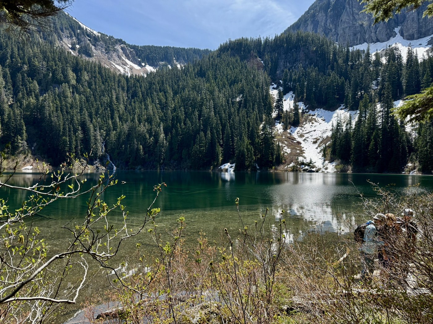 Today was really beautiful and the trail was a little bit busy. The trail is in good conditions and the view of the lake was really spectacular. There were no snow on the trail, but you could see some snow on the mountains at the top.