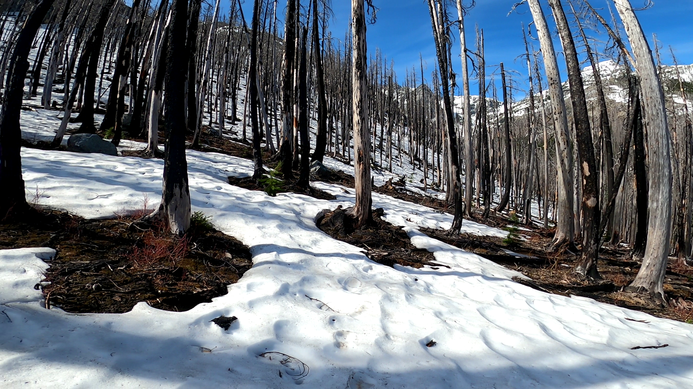 Went up towards Cow Meadows. Made it about a half mile short of the meadow, around 4800ft the snow patches became a full layer snow, soft, and getting above the ankles. Wont be long until it melts out.