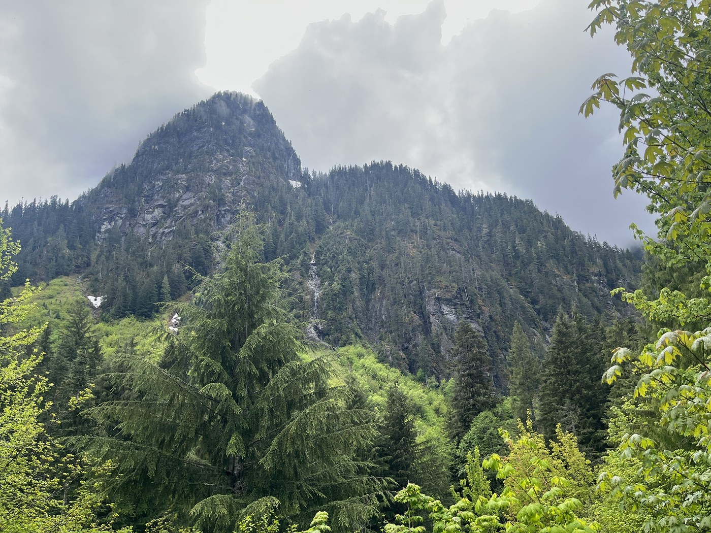 Saw some wildflowers--trillium, columbine, bleeding hearts, solomon's seal--and a juvenile pileated woodpecker, frog, and banana slug (and a small number of mosquitoes). Beautiful mountain views, lovely to see the waterfalls high above while walking along. A few other hiking groups were here, but definitely not crowded. Find the hidden chandelier on your right as you hike in (within about 3/4 mile of the townsite)
