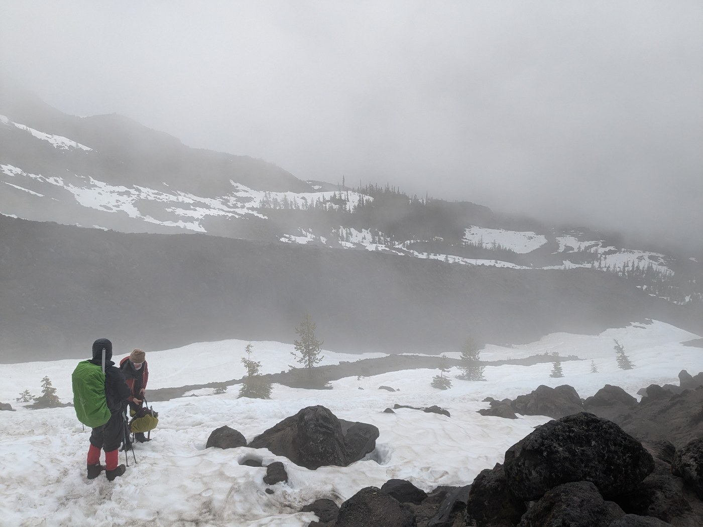 Had a fun but rainy hike up on Monday morning. The road in and the couple miles of the trail is snow free. We started at up at 6am in an attempt to get a slightly better weather window. But alas we still got rained on. Turned around at the weather station as the misery factor was getting high - no visibility, drenching drizzle. Got in a couple glissades and some practice with crampons for some friends newer to mountains. Folks were going up in just microspikes with poles, but I love me some crampons and an ice axe. We got great purchase on that softening springtime snow. Even with misty, cloudy weather, being on Helens was a stunning experience. Will return next year.