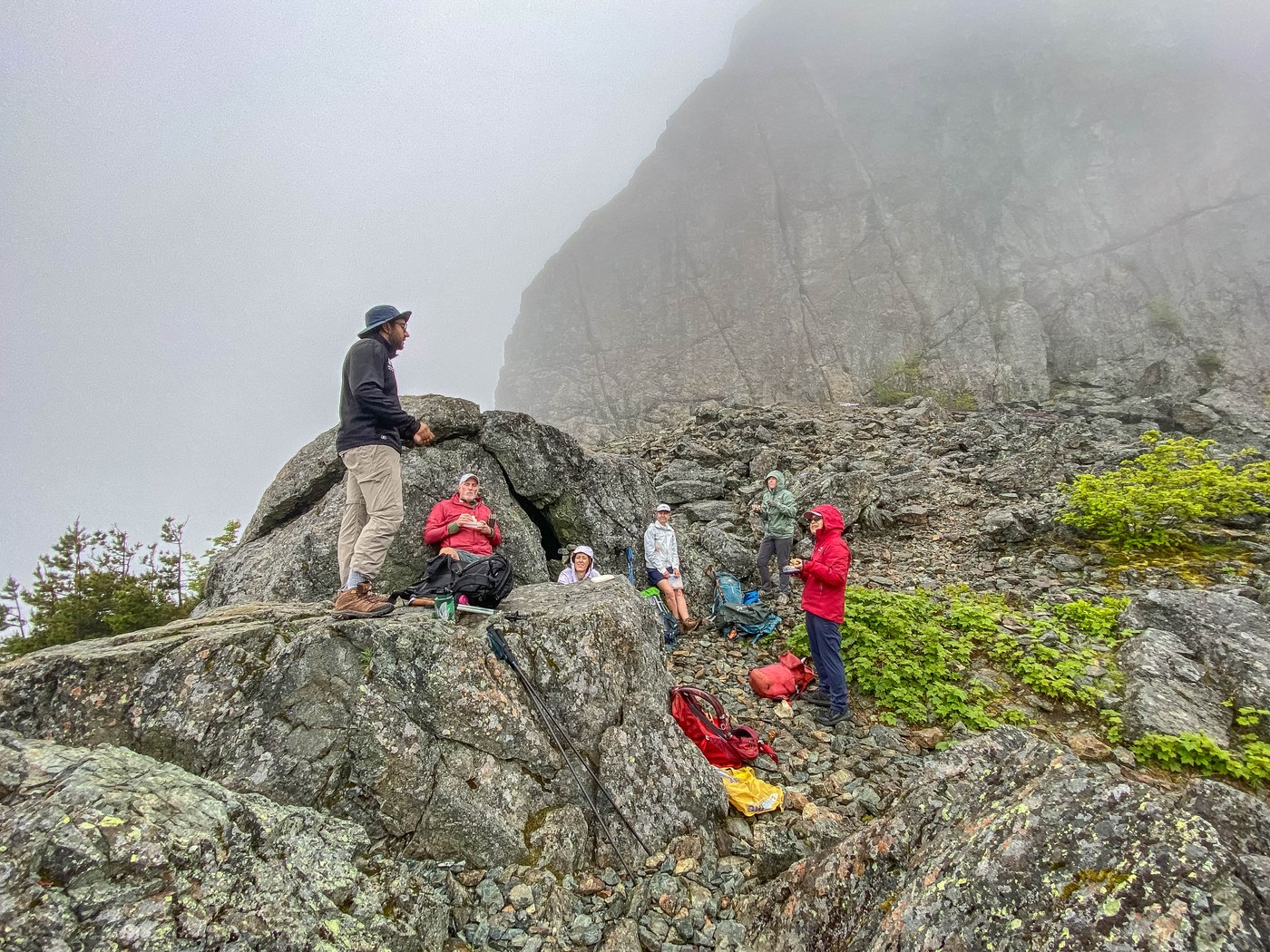 Fun group and decent pace, 2.3 up for the first hour and 2.2 overall including a 20-minute break at the base of the Haystack for a windy, foggy snack break. Thankful for the large parking lot and stocked Portapotties.