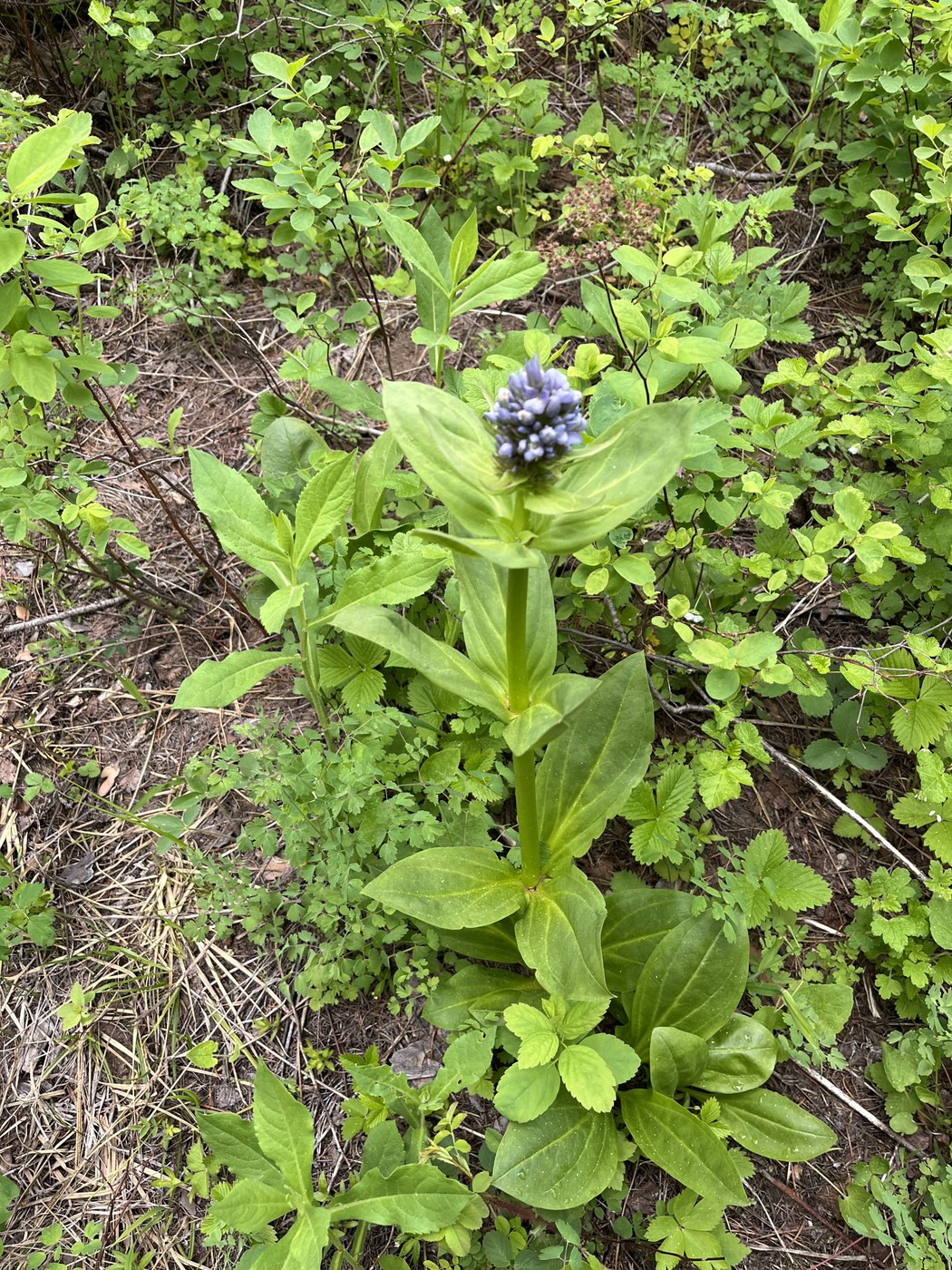 We parked at the campground and did a 2.5 mile loop hike counter clockwise. This is a gorgeous state park in a far flung corner of our state. 80% of the hike is in the woods with now views, but there were tons of wildflowers blooming. The trail is steady but manageable uphill on the way to the viewpoint and then a little steeper on the downward loop. The view/lookout area is absolutely stunning vista of the canyons and mountains all the way south to the snow capped Willowas in Oregon. There's a warming hut that must get plenty of use in the winter, but was deserted when we were there.