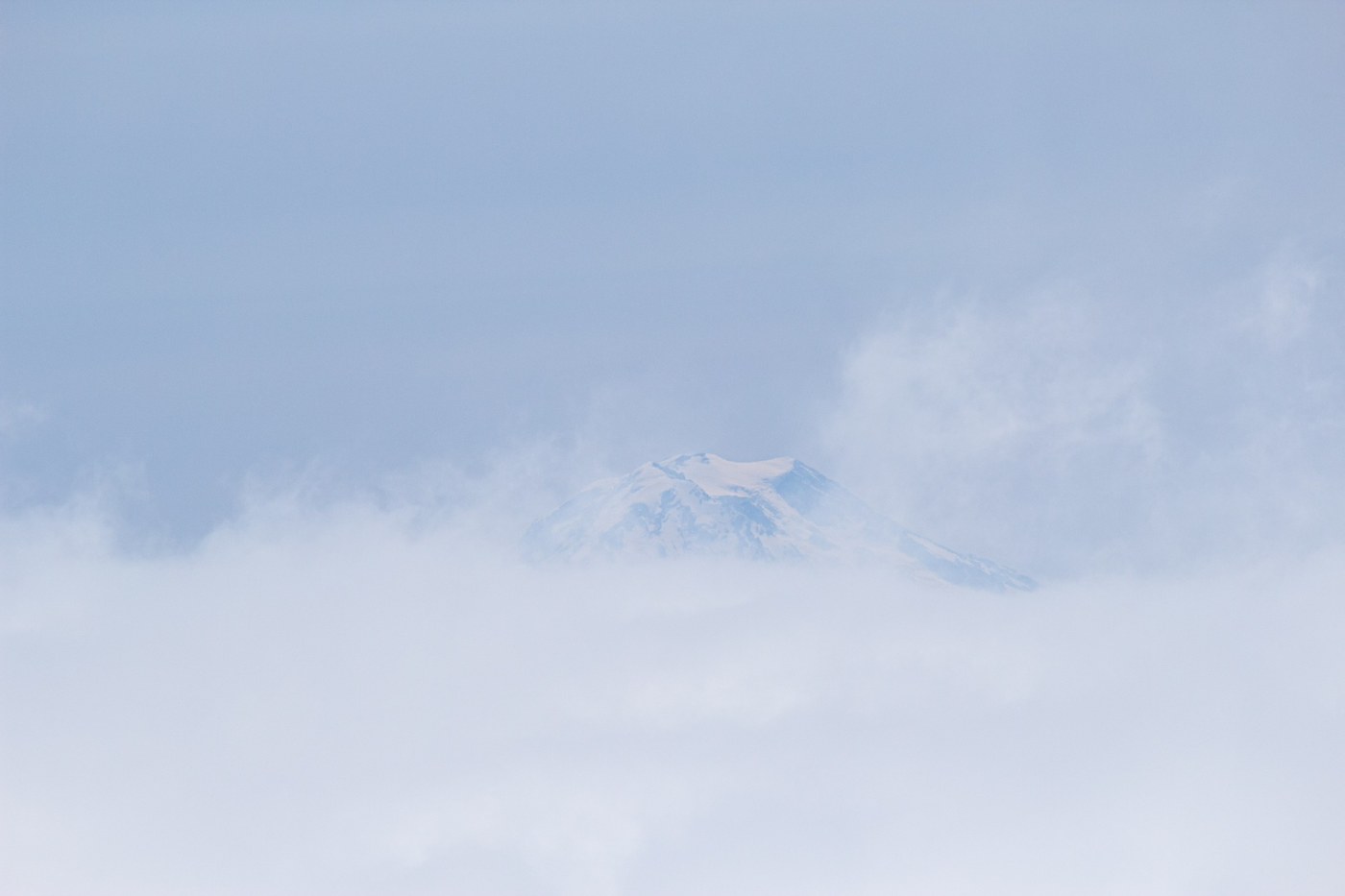 Started from the upper trailhead around 8:30AM on Sunday June 1st. There were only 3 other cars in the lot. We got unlucky with some weather - it was sunny when we parked but right when we started, we got hit with thick fog and clouds. This unfortunately kept the snow hard and somewhat icy. I was wearing microspikes and while they may have been sufficient in warmer conditions, they did not cut it now. I actually slipped and fell about 30 feet down the slope but managed to self-arrest with my ice axe. The axe was the most important tool I had, without which I would not have been able to summit that day. My buddy had crampons and he fared much better. The sun kind of came out as we exited the chute, which helped soften the snow and made the last few hundred feet of vert more manageable. We summited around 11am, hung out for an hour at the summit in swirling clouds, and then glissaded most of the chute down. By this point the snow had softened up, so glissading wasn’t too bad, but it was still sketchy in some places, as there were visible holes in the snow, rocks protruding, etc. There are also a couple rocky breaks in the snowpack that you have to scramble over. I would expect some of these areas to get sketchier as the snow melts more. Still had a fun time but had a couple terrifying moments as well.