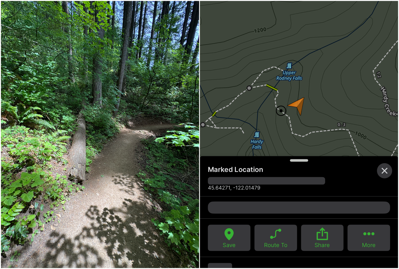 2. 45.64271, -122.01479 - same GPS coordinates at previous tree, this is just a few feet from the other log. It’s virtually off the trail but should be bucked back a few feet