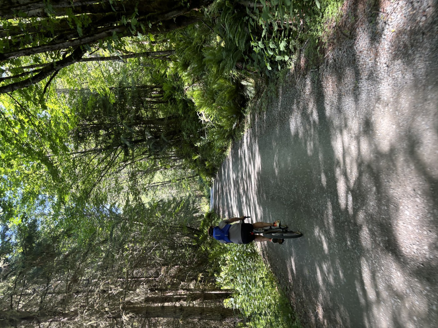 The empty carbon river road was smooth and fast on our mountain bikes, with two rolling hills. the closed portion of the road after the gate was surprisingly well maintained for a road that last saw private cars in 2006. There were a few clear re-routes due to washouts but the re-routes were plenty wide and had several inches of fresh gravel. It took about an hour to ride from Kolisch Rd to the campground, “without really pushing the pace,” but we are a few 40-something dads who were pretty fit in our younger days, so likely still at the stronger end of the spectrum.