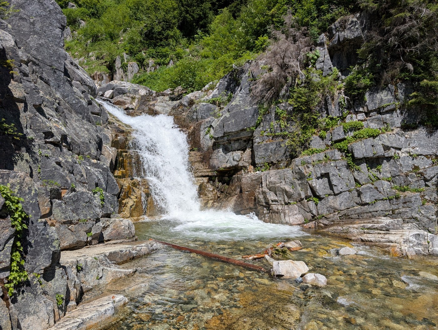 TRAIL: The trail is in excellent shape, especially below Keekwulee Falls. It's obvious WTA and the Forest Service have done a bunch of work just above the Denny Waterslide, digging rocks out of the trail and putting in flat stepping stones in many places. Thanks for "taming" this wild and rocky area! Of course, the trail above the Waterslide is still very rocky much of the way up to Hemlock Pass, but that's just part of the character of this valley.