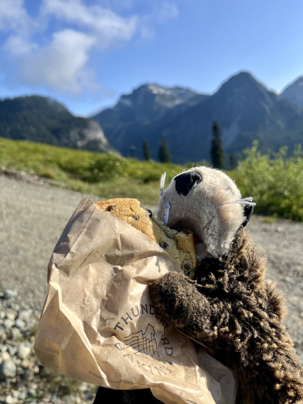 Trail is in good condition with only small patches of mud! Only thing to note is a large downed log at ~1.5 miles and a small stream crossing shortly thereafter. Log shouldn’t be too hard for most people unless they’re recovering from knee surgery like me (yes, sea otters have knees!). There were good stepping stones across the stream so my flippers didn’t get wet, but the flow could get bigger if there’s more snow melt.