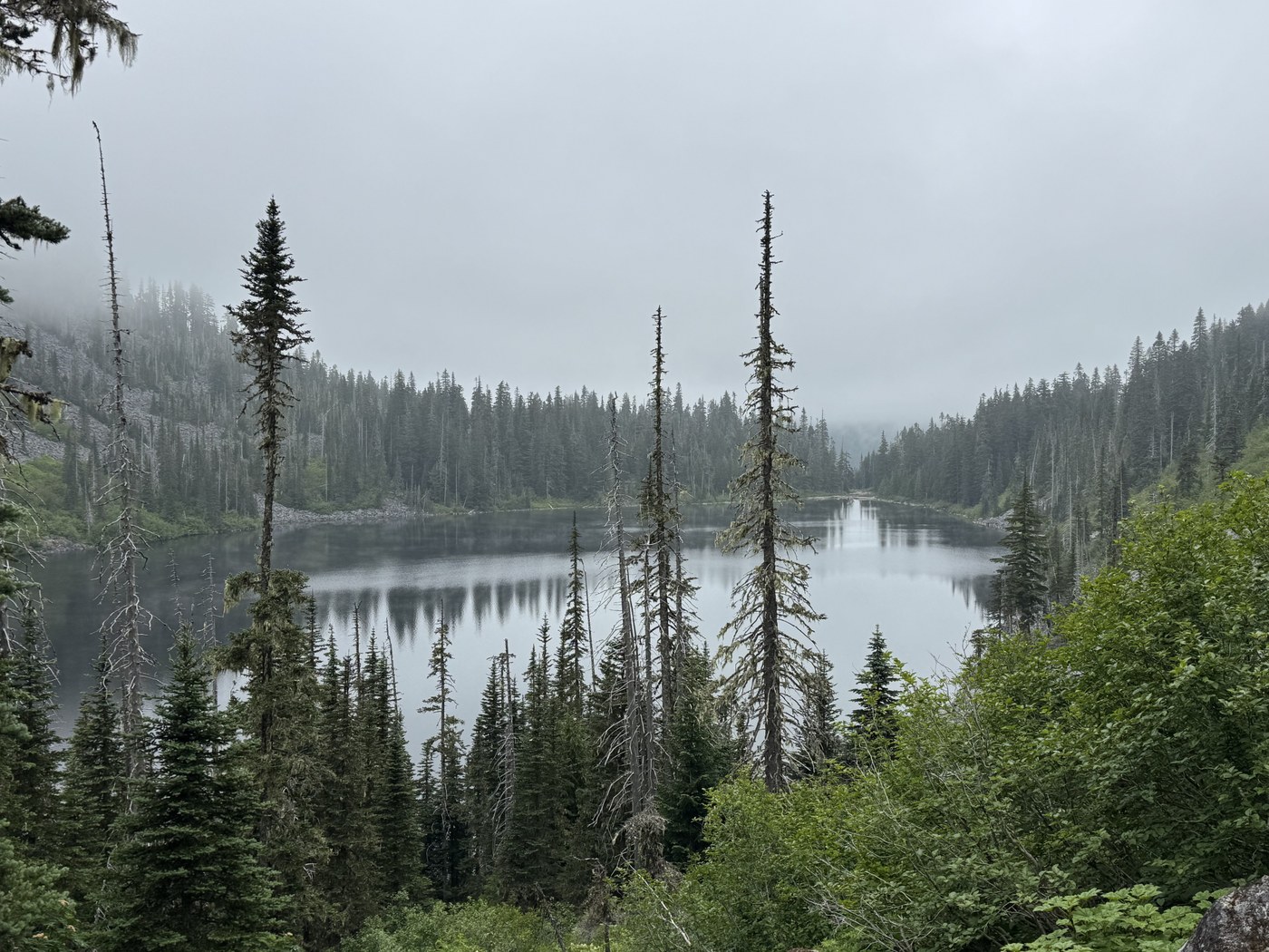 After you reach the top the trail descends for a mile and a half. Note that WTA notes the trail is 11mi and I clocked 6.5-7mi on the way there meaning it is more like 13-14 miles if you are going to the campsite.