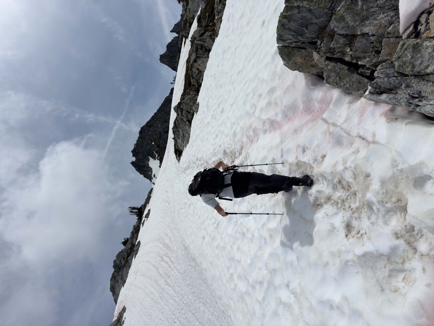 Trail is in good condition but gets a little thick in some sections after punching out of the forest. Once you pass the marmot families on after getting out of the brush is where the snow begins. We arrived at the snowfields around 12:45 and threw on microspikes and continued using our poles. Poles are a must otherwise you are going to slip and fall and slide. The traverse is not too difficult just be wary of areas that you could punch through. Once finishing the traverse you cut upwards and the grade increases to probably the most difficult section of the hike currently. Once reaching the lake the path to the lookout is mostly snow free and well defined a little narrow in some sections due to snow but never treacherously narrow. A little scrambling to reach the lookout of course but once you've made it that far its not problem.