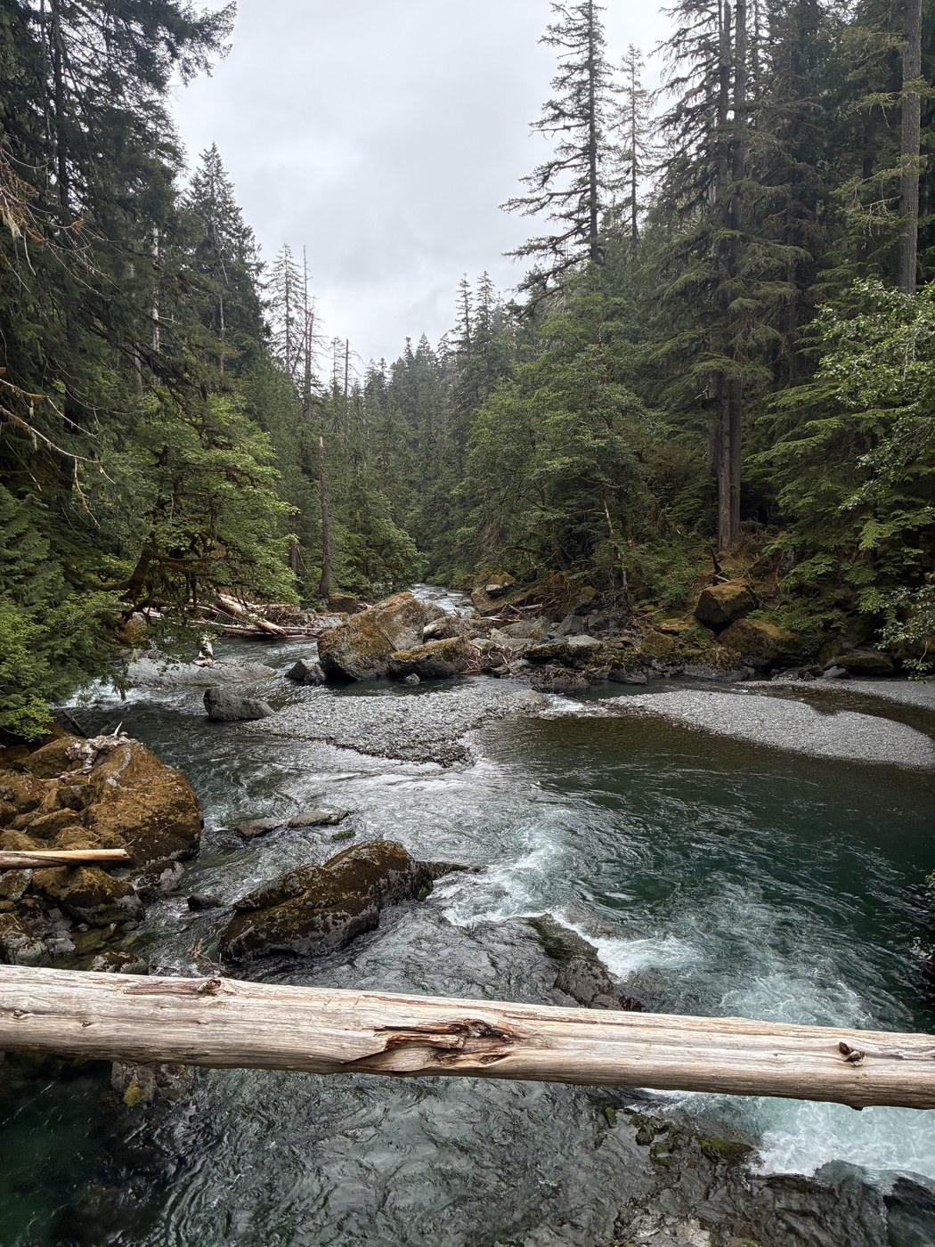 Was staying at the Staircase campground with the family and while my wife was putting our kid to bed I took advantage of the long daylight hours and did a quick evening 2 mile trek. It was pretty. Going clockwise the 1st half is a romp along the mighty North Fork Skokomish. You'll cross a suspension bridge then the 2nd half is a peaceful forest bath through old and second growth.