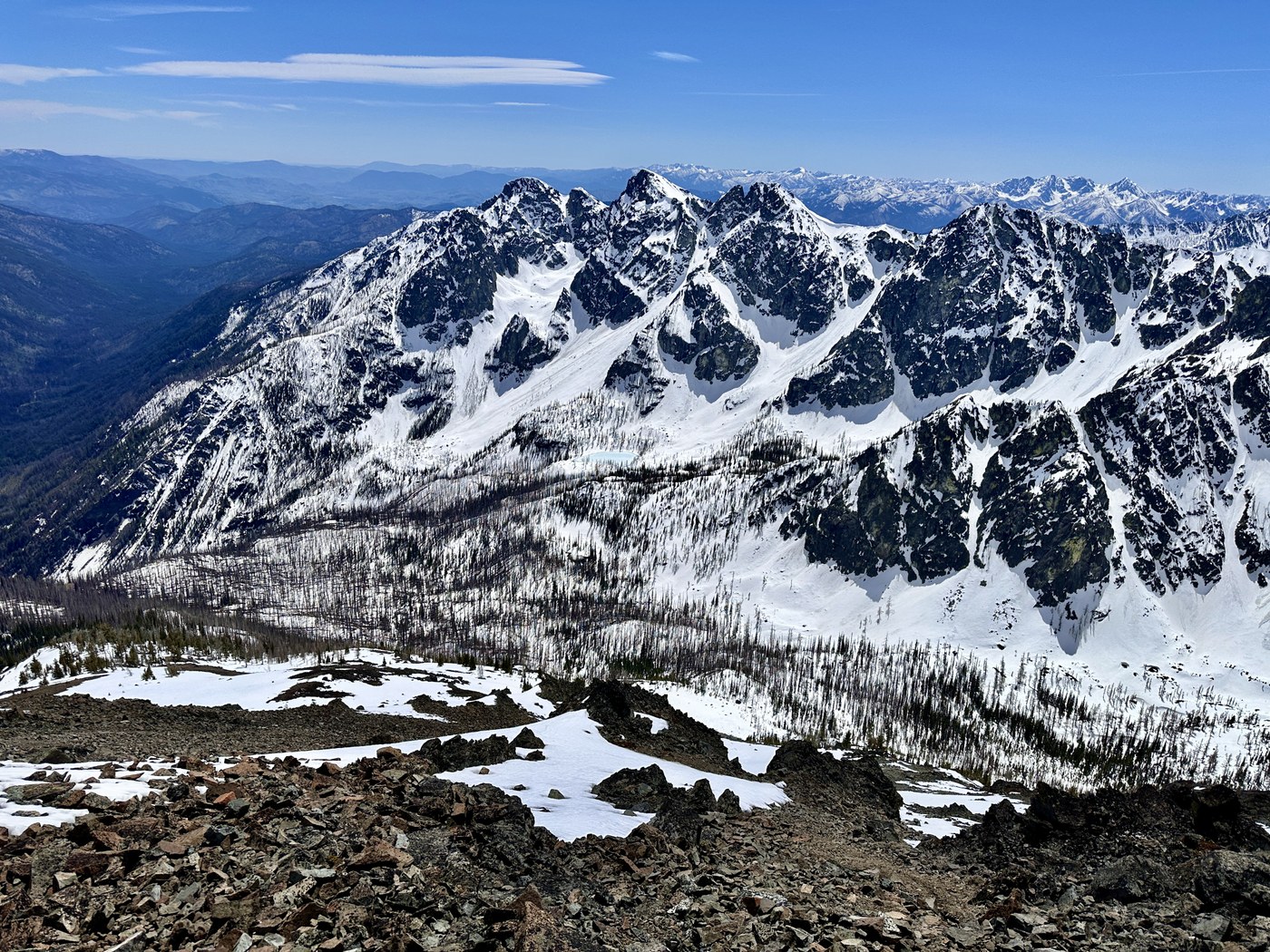 Followed the steep snow on the descent for about 400 feet after leaving the summit. This helped make great time on the way down. Helping to make up for it feeling hard and slow on the way up.