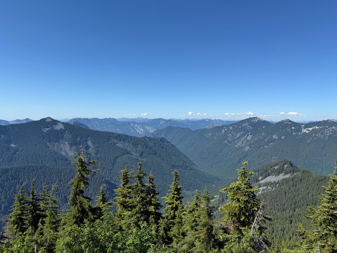 Very thankful I finally got to do Mt Defiance on a clear day in June for fields of colorful flowers and views of far off peaks with multiple nearby lakes. This is probably my favorite peak hike along I-90. It was a hot day, so I was glad to be hitting a hike that included a lake to cool off in afterwards and to clean the trail dirt off my legs. And it’s truly a great time to visit this peak. There were bugs that like to swarm your face, but no stingers, which has been an issue here as summer progresses along with increased haziness from wildfire smoke. Dog and I will take annoying gnats over ground bees any day.