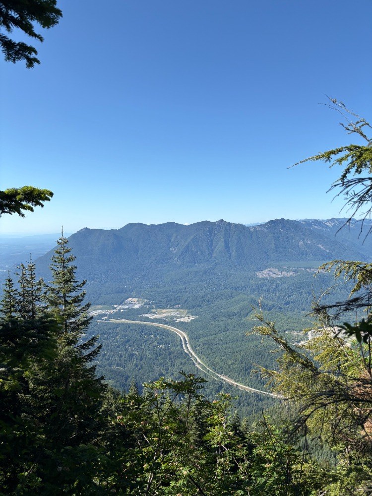 There are no bugs for almost all the trail, but do be warned that near the peak there is a LOT of mosquitos. Like, if you stop moving for 3 seconds you get bit. It's genuinely just a swarm everywhere, so either bring bug spray for the top of keep moving. I got bit 4 times even barely stopping still. The view at the top is very good, you can look towards Rainier (Picture 1) and also to Mount Si and that area (Picture 2).