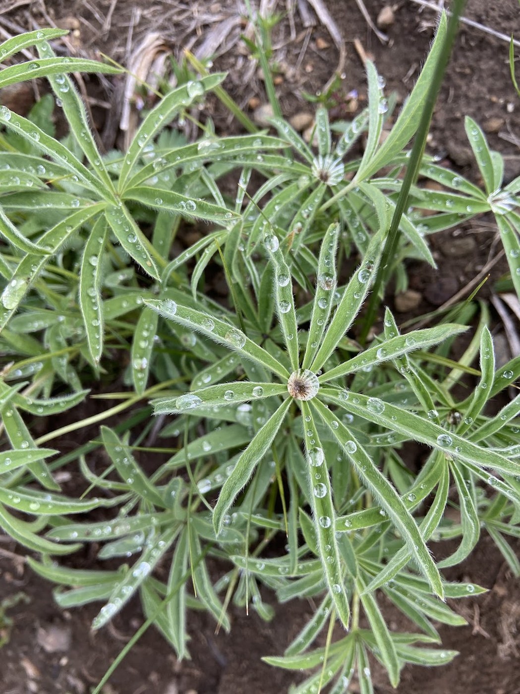 Day 2: out and back on the KCT to the N side of Scar Peak. Much the same. We didn't see any water sources that day; we checked out the camp at Wapaloosie mountain but it was not clear where you'd get your water (a mile south back at Jungle Hill camp?) Otherwise a super pleasant stroll through pretty meadows, where the lupine had collected little drops of the previous night's rain. Bugs not too bad as long as you kept moving. Dirtbikes had ridden this way the previous day and left pretty substantial tracks in the path.
