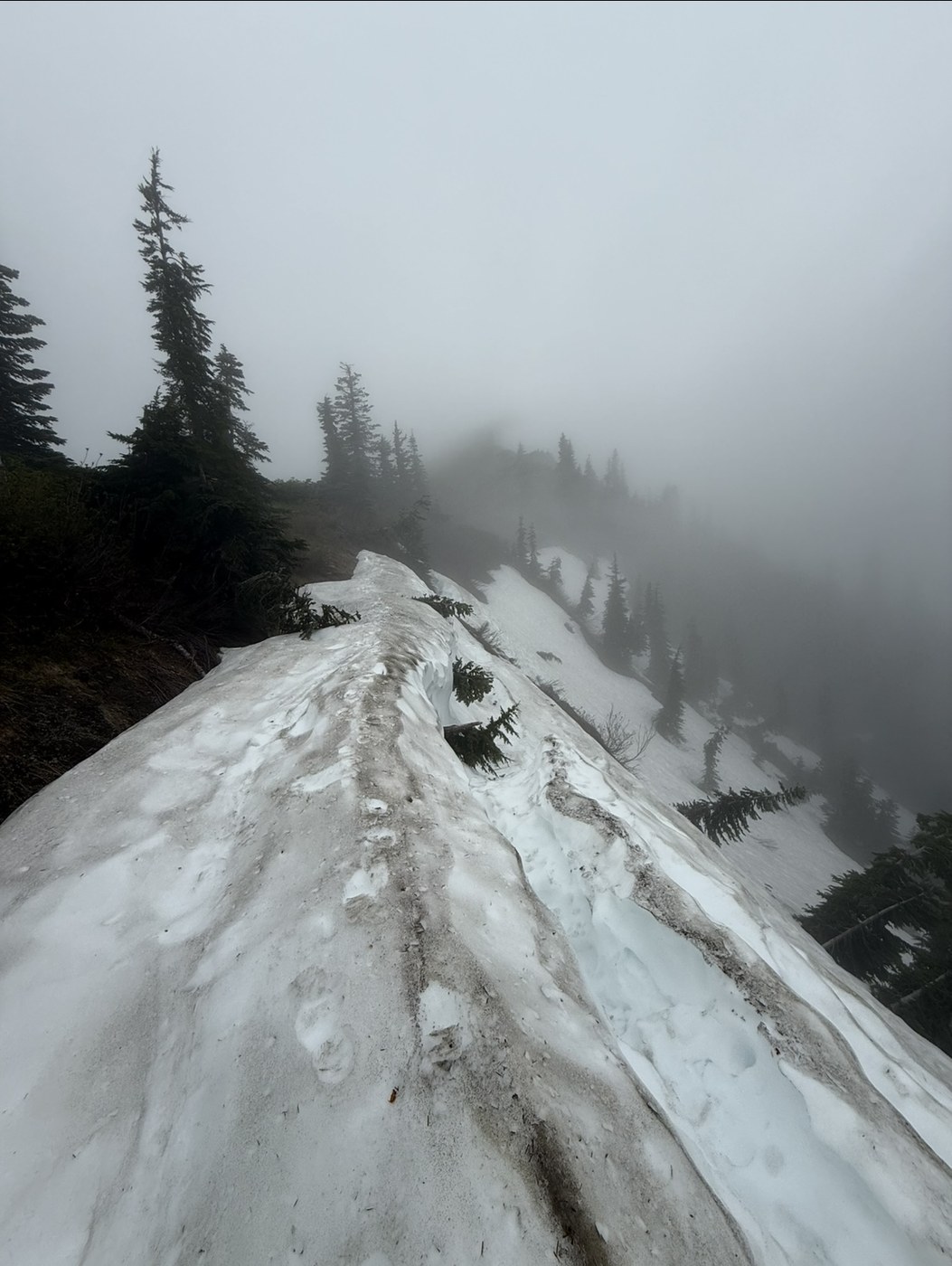 Intended to do a backpacking trip but had to change our plans because of an impossible to pass snow field. Looked extremely dangerous because of the snow. We also noticed abandoned backpacking gear near the top and saw other hikers who said they had called and that there had been multiple calls about it already. The view on the way up was great but the cloud cover that moved in eventually made it impossible to see. There was also a portion of the trail that was extremely narrow but not impossible to pass- just requires extreme caution.