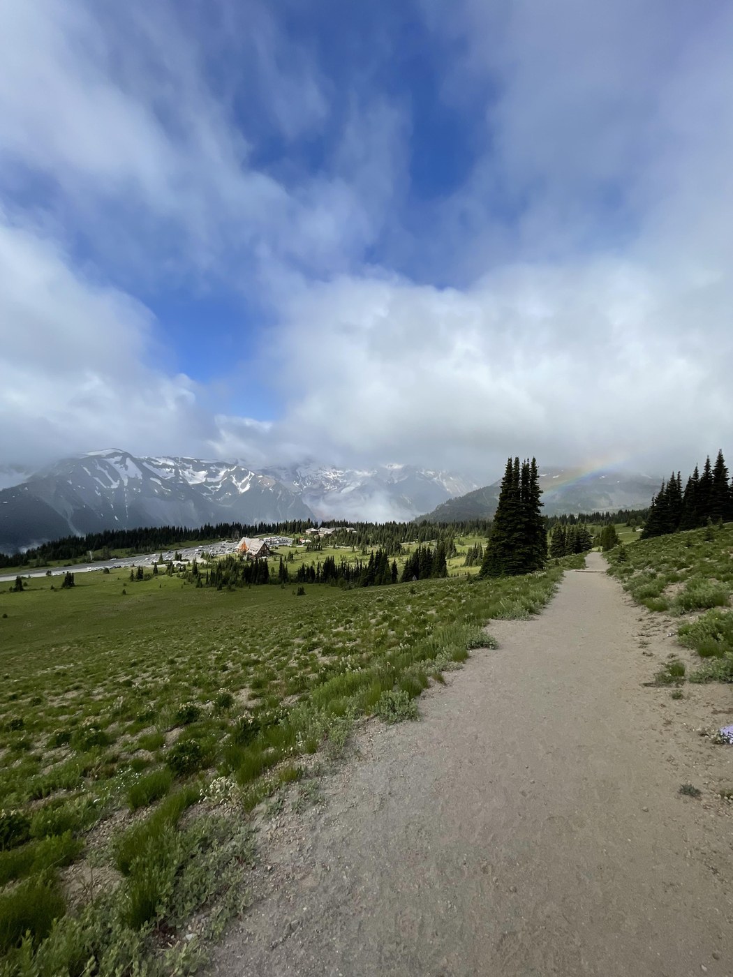 You still had better weather than on Eagle Peak. Solid clouds with light drizzle. Dege is one of 3 go to hikes between the week when the Sunrise road closes and White River Campground stays open. It is almost eerie on Dege surveying an empty parking lot and zero people. We ignored the -Please limit your stay sign.