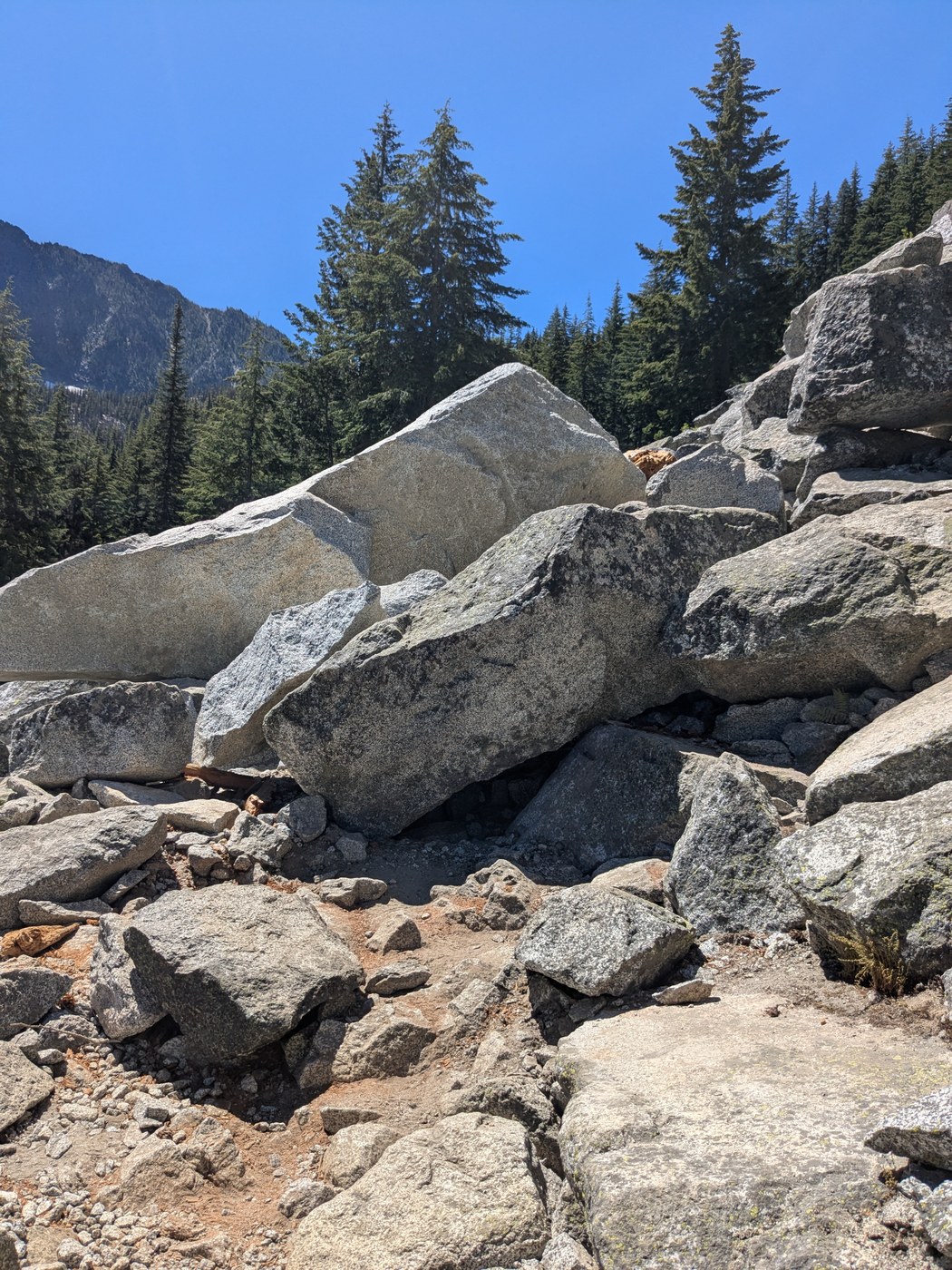 Overall, the trail was in good condition and easy to follow. There is a rock slide around mile 5 that requires climbing over boulders with hands and feet but you can easily find the trail again. There are also a couple of trees across the trail but I only had to crawl under one, the rest I could climb over or go around.